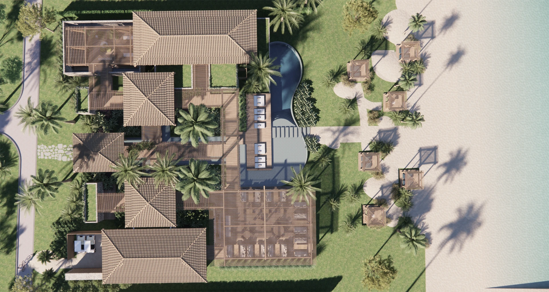 Entre o azul infinito do mar de Corumbau e a atmosfera ainda preservada do sul da Bahia, nasce um empreendimento que traduz, em cada detalhe, o DNA autoral de David Bastos. Mais do que um condomínio de casas de alto padrão, o projeto das áreas comuns foi concebido como uma extensão da experiência de viver à beira-mar — onde arquitetura contemporânea, natureza e estilo de vida se encontram em perfeita harmonia.