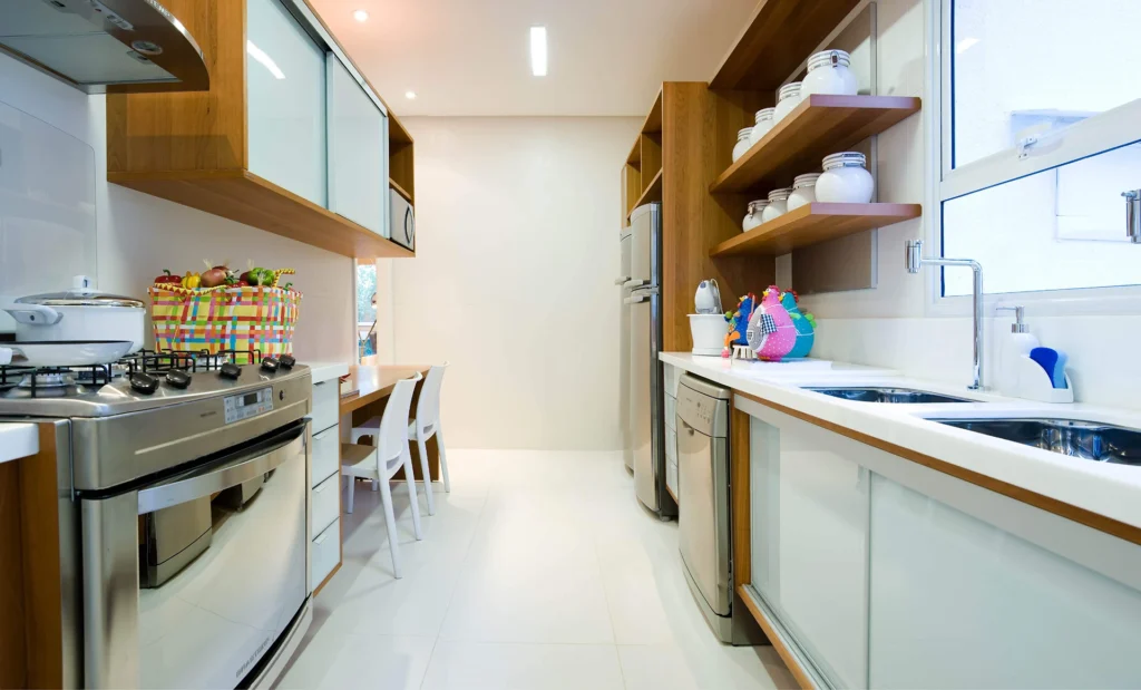 A arquitetura e os interiores atuam como uma narrativa contínua, em que a integração dos ambientes sociais — estar, jantar e cozinha — favorece a fluidez e a percepção imediata do potencial do apartamento. As soluções adotadas privilegiam conforto, funcionalidade e versatilidade, qualidades essenciais em um projeto pensado para dialogar com diferentes perfis de moradores.