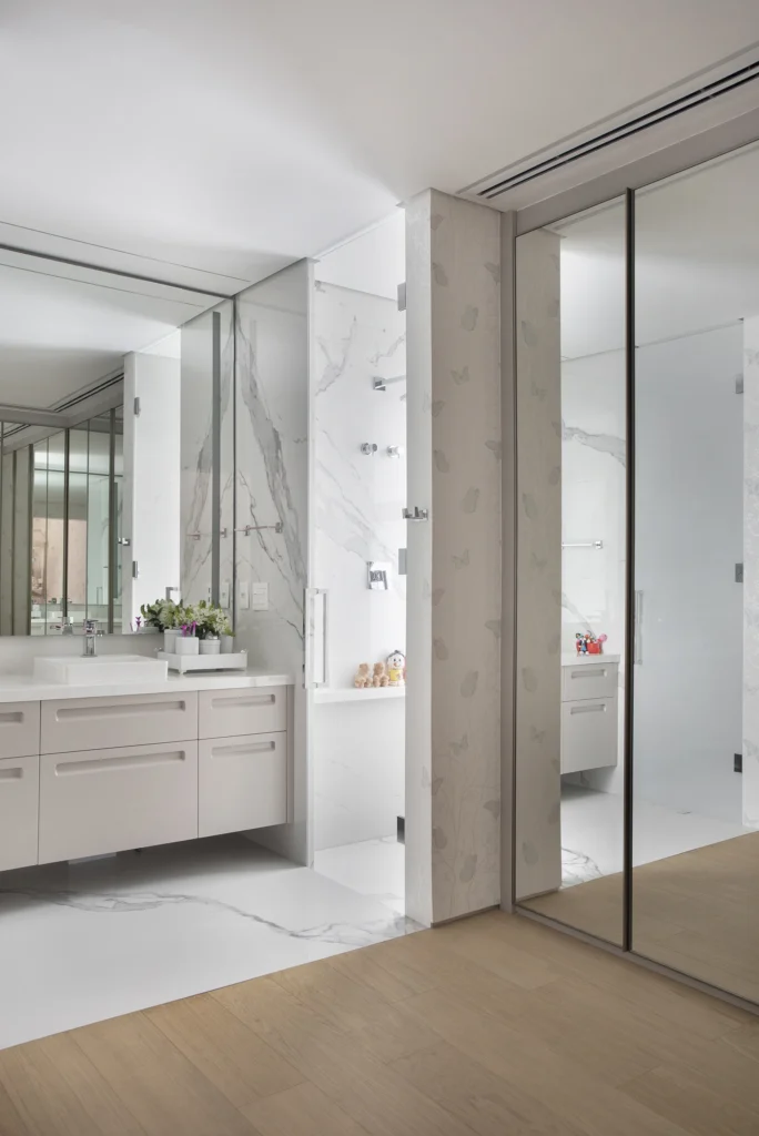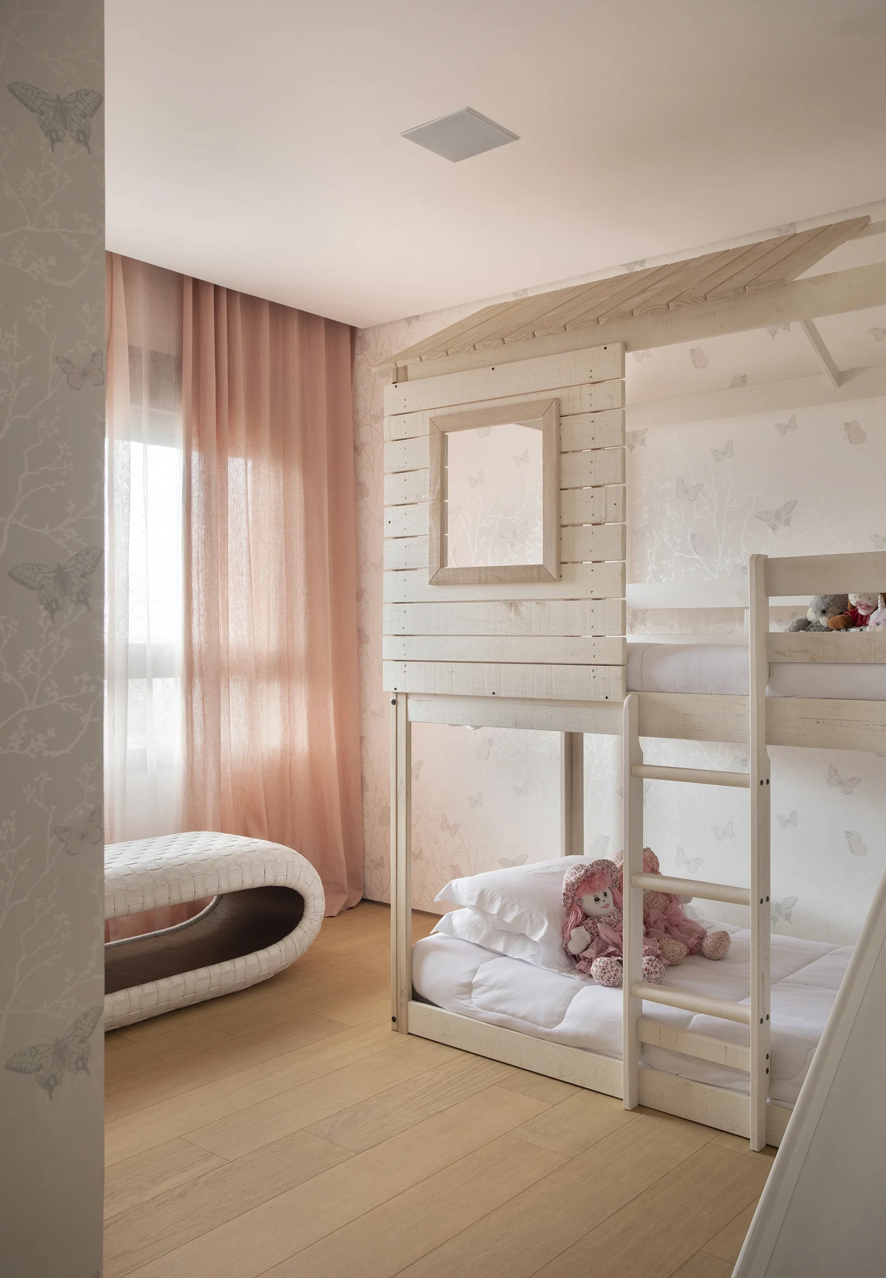 Finalizado em 2022, o projeto assinado por David Bastos, com a equipe da DB Arquitetos e execução da Colina Engenharia, transforma um apartamento de 180 m² na Vila Madalena em um espaço plenamente adaptado à rotina de uma jovem família com duas filhas. Antes moradores de uma casa, os proprietários buscavam no primeiro apartamento a combinação de comodidade, segurança e a mesma sensação acolhedora que tinham no antigo lar.