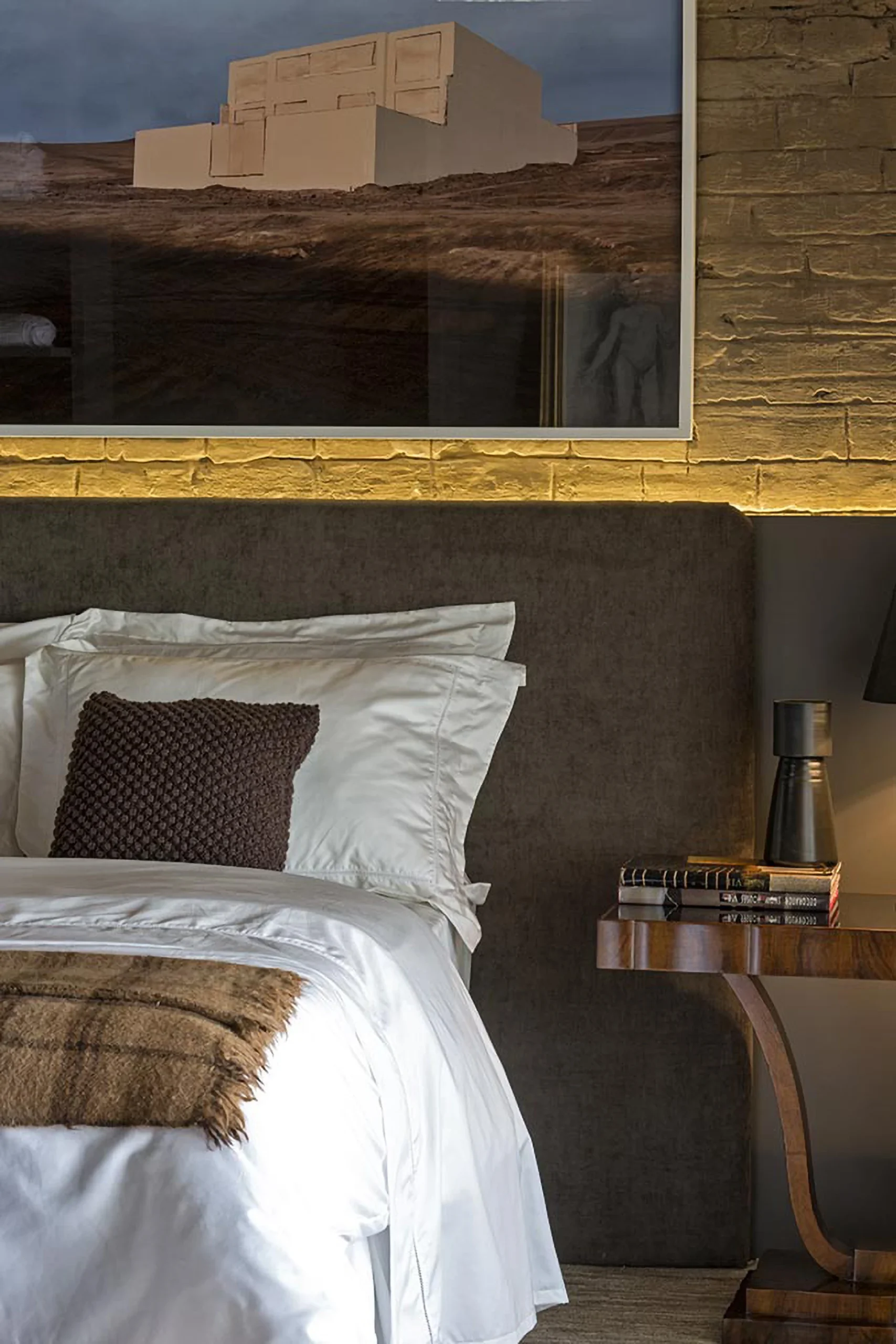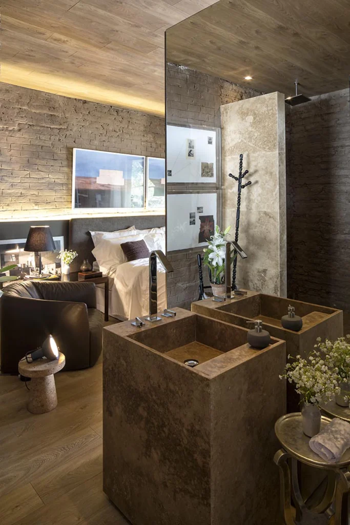 - Iluminação e Atmosfera: Valorizando a luz natural, David Bastos utilizou aberturas para criar um jogo de luz e sombra que conferiu dramaticidade e leveza ao loft ao longo do dia