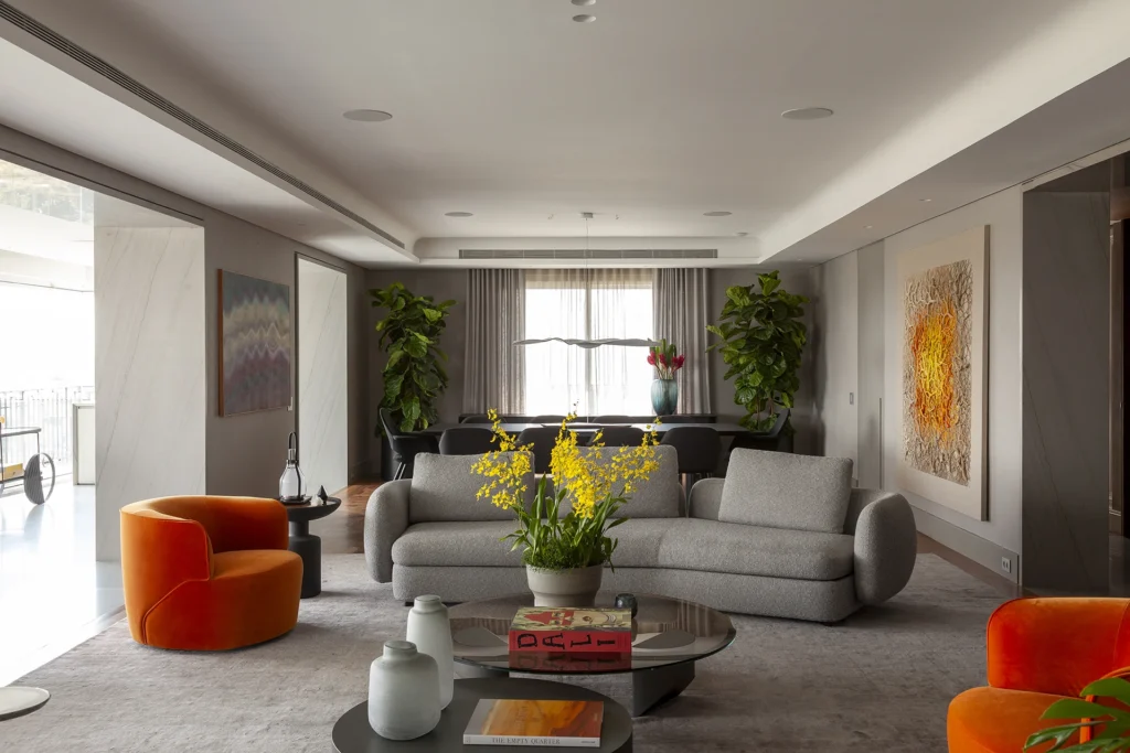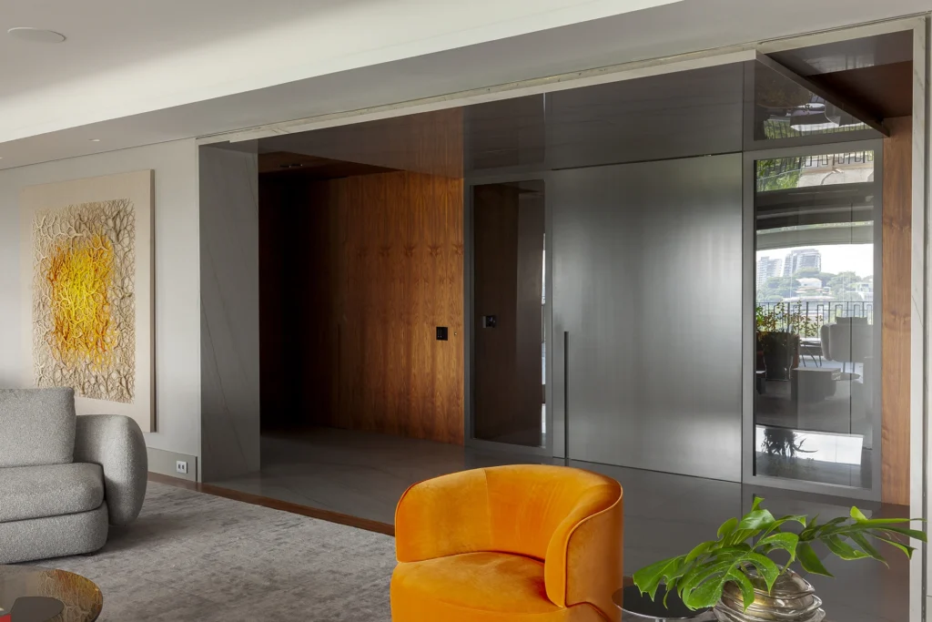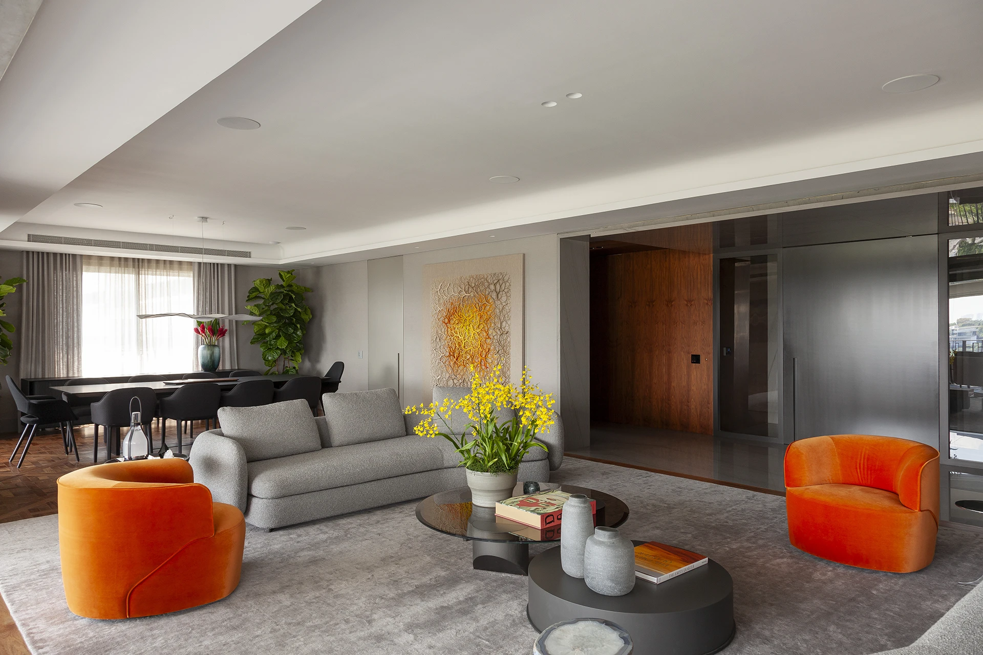 Com 440 m², este apartamento passou por uma reforma completa para receber um casal de empresários com filhos, refletindo um novo momento de vida e a busca por conforto, amplitude e personalidade. O projeto teve como premissa reorganizar os espaços e qualificar a relação entre arquitetura, luz natural e modo de viver da família.