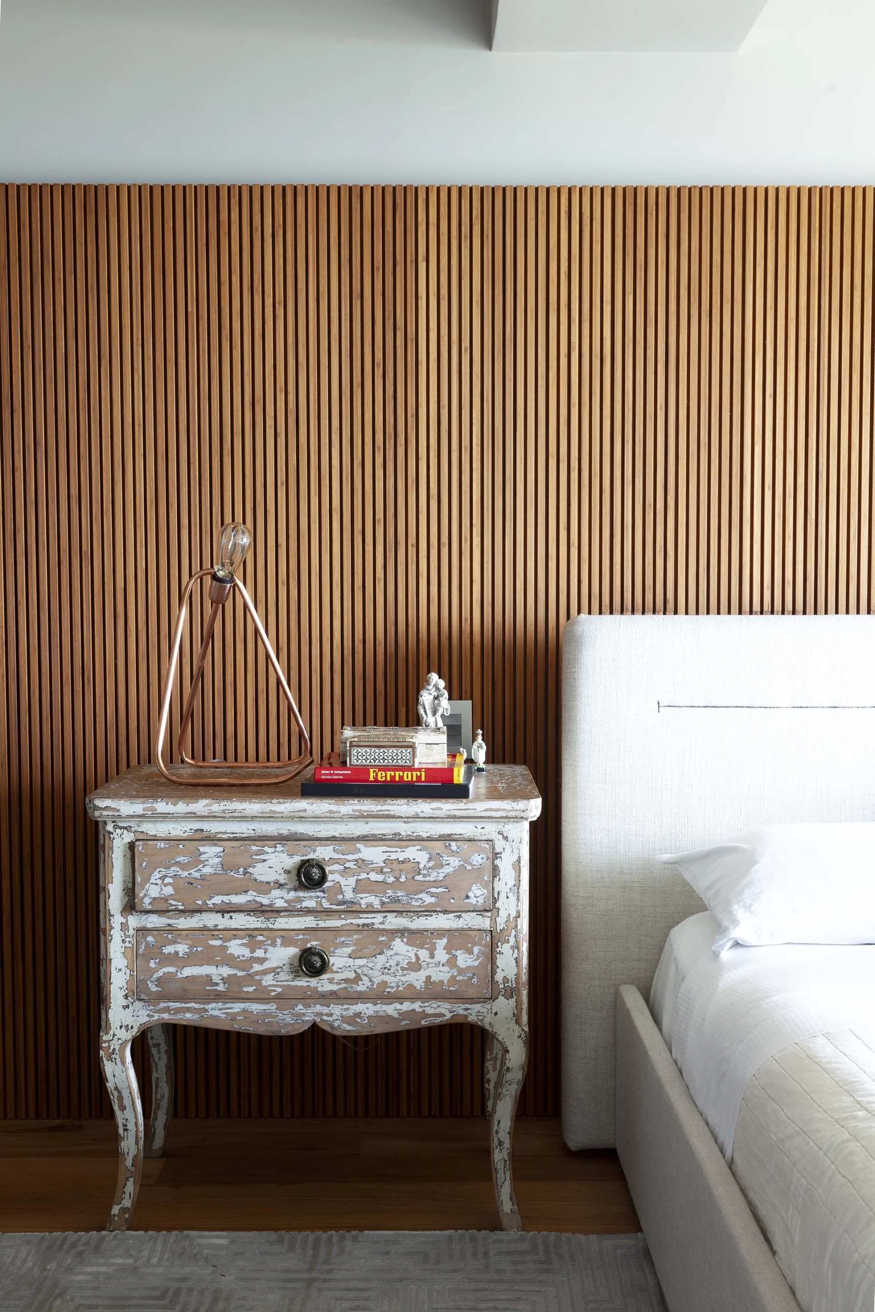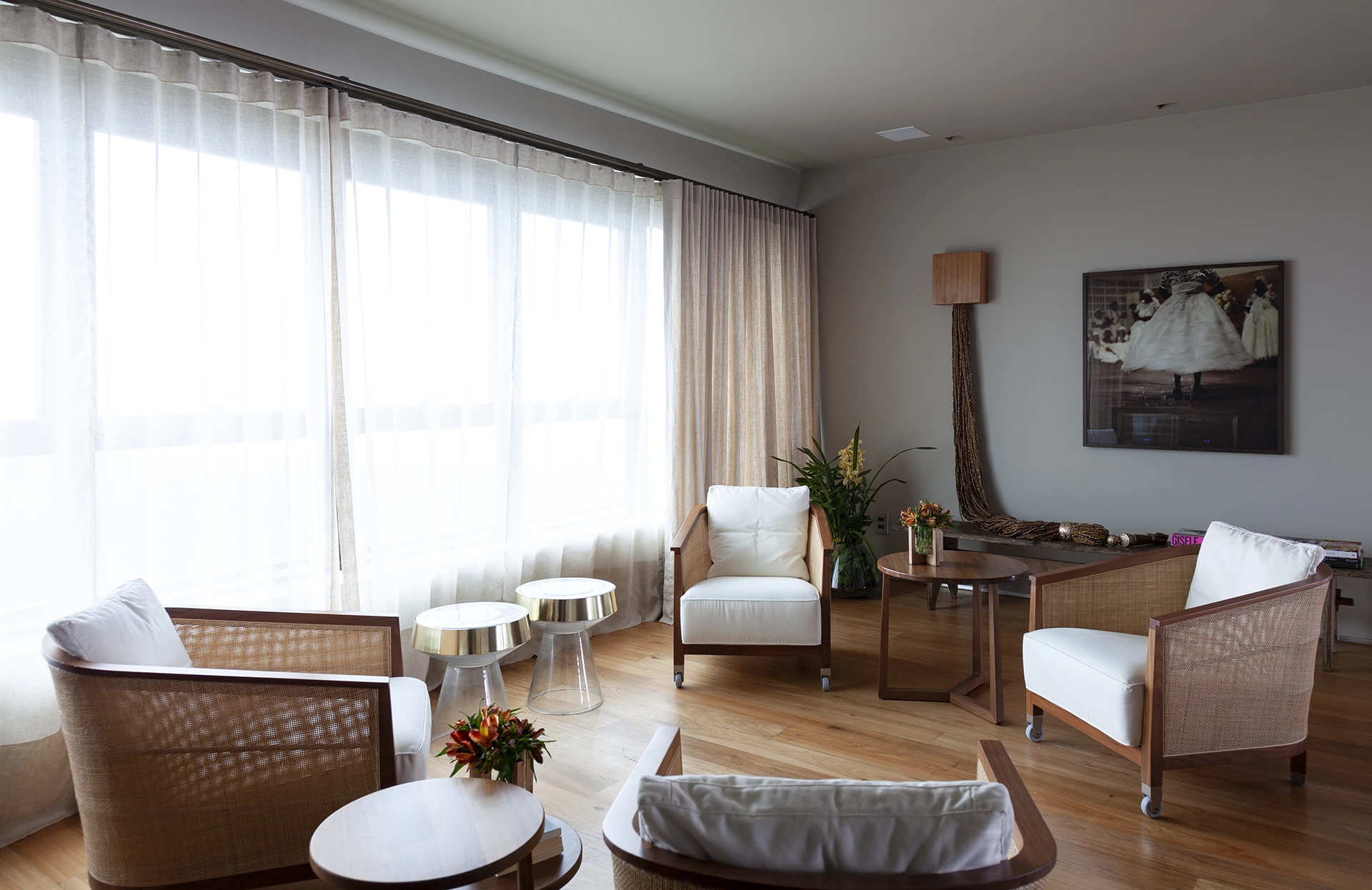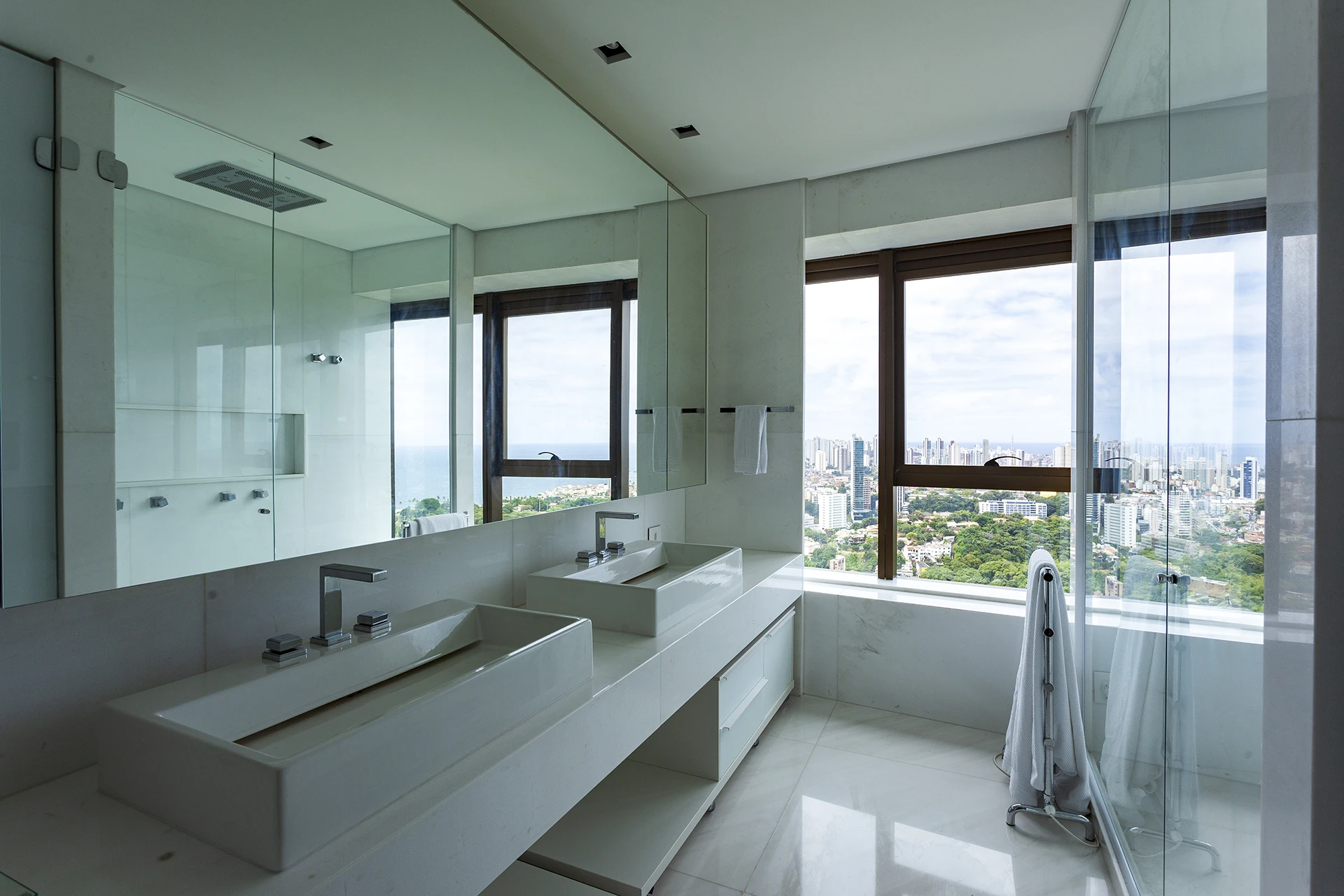 oi pelas mãos de David Bastos que dois apartamentos de cobertura, no bairro de São Lázaro, uniram-se para dar origem a uma ampla penthouse, concebida como base perfeita para desfrutar do clima quente de Salvador e das extensas vistas para o céu e o mar. Pensado para uma família que valoriza a vida ao ar livre, o projeto prioriza a integração com o exterior, coroada pela criação de uma piscina no terraço descoberto. Implantada de forma sutil, a piscina não se projeta sobre a paisagem: o piso ao redor foi parcialmente elevado, garantindo continuidade visual e leveza ao conjunto.