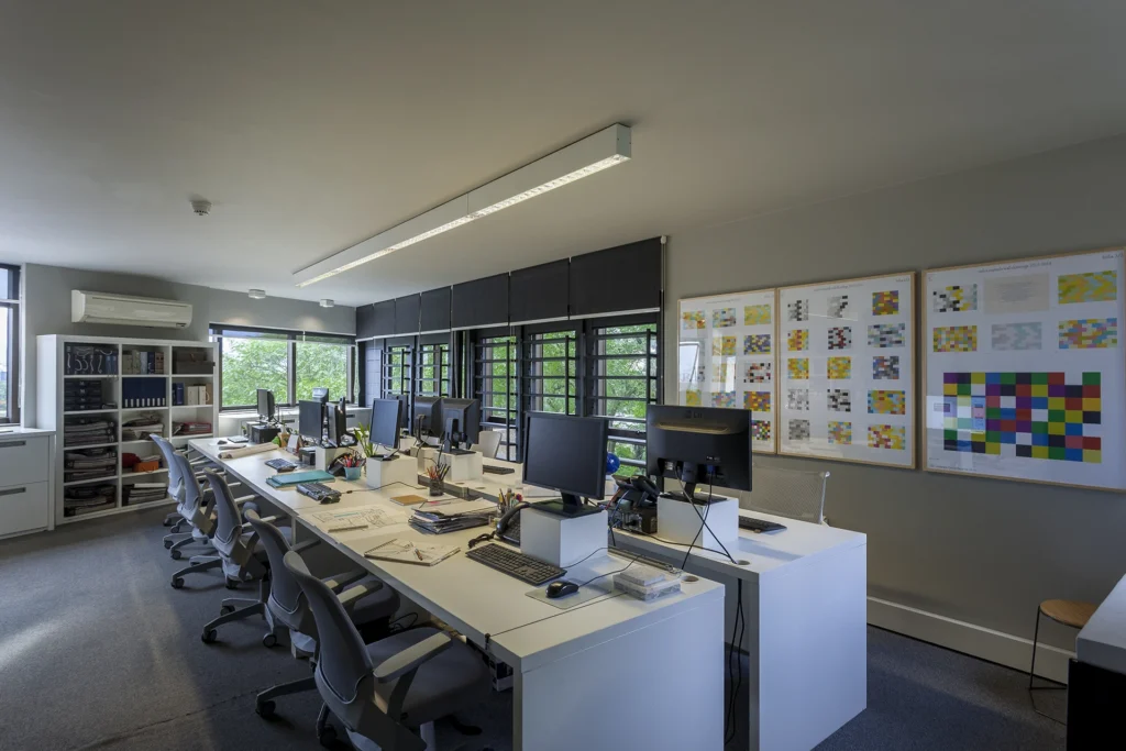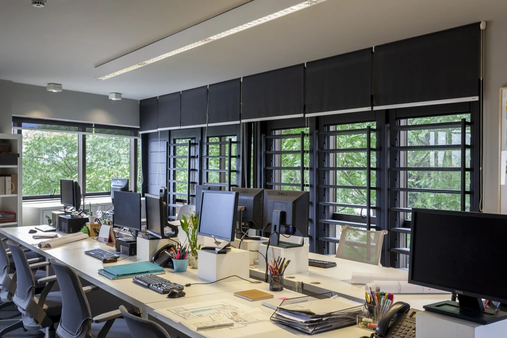 O projeto luminotécnico combina luminárias da Lumini, que valorizam volumes e materiais, com as persianas da Uniflex Cidade Jardim, responsáveis pelo controle preciso da luz natural. A curadoria artística inclui obra da Lammart, inserindo sensibilidade e identidade ao espaço corporativo.