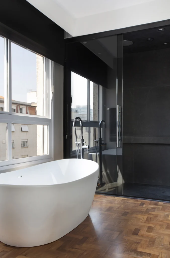 Localizado em Higienópolis, um dos bairros mais tradicionais e nobres da região central de São Paulo, este apartamento linear de 500 m² passou por uma transformação profunda que redefiniu completamente sua forma de habitar. Adquirido como um imóvel antigo, o projeto partiu de uma decisão radical: colocar o apartamento abaixo e reconstruí-lo integralmente, preservando apenas alguns elementos originais carregados de valor histórico e afetivo, como o piso de taco em áreas da zona íntima e a imponente porta principal do hall de entrada.