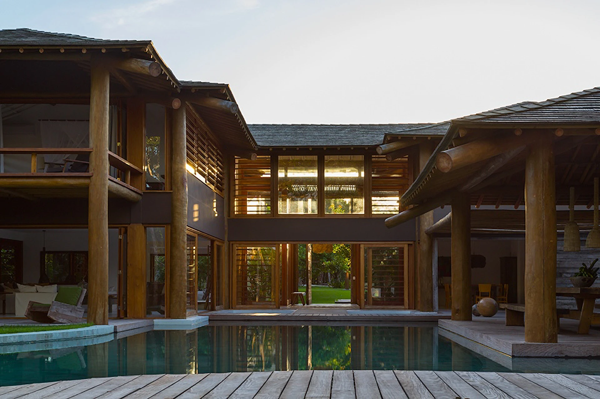 Construída em 2014, em Trancoso, nas praias de Itapororoca e Itaquena, esta casa traduz de forma precisa a identidade arquitetônica que ajudou a definir o estilo da região. A estrutura em eucalipto aparente, elemento recorrente e marcante nos projetos de David Bastos, confere caráter, ritmo e autenticidade à arquitetura, dialogando diretamente com a paisagem natural ao redor.