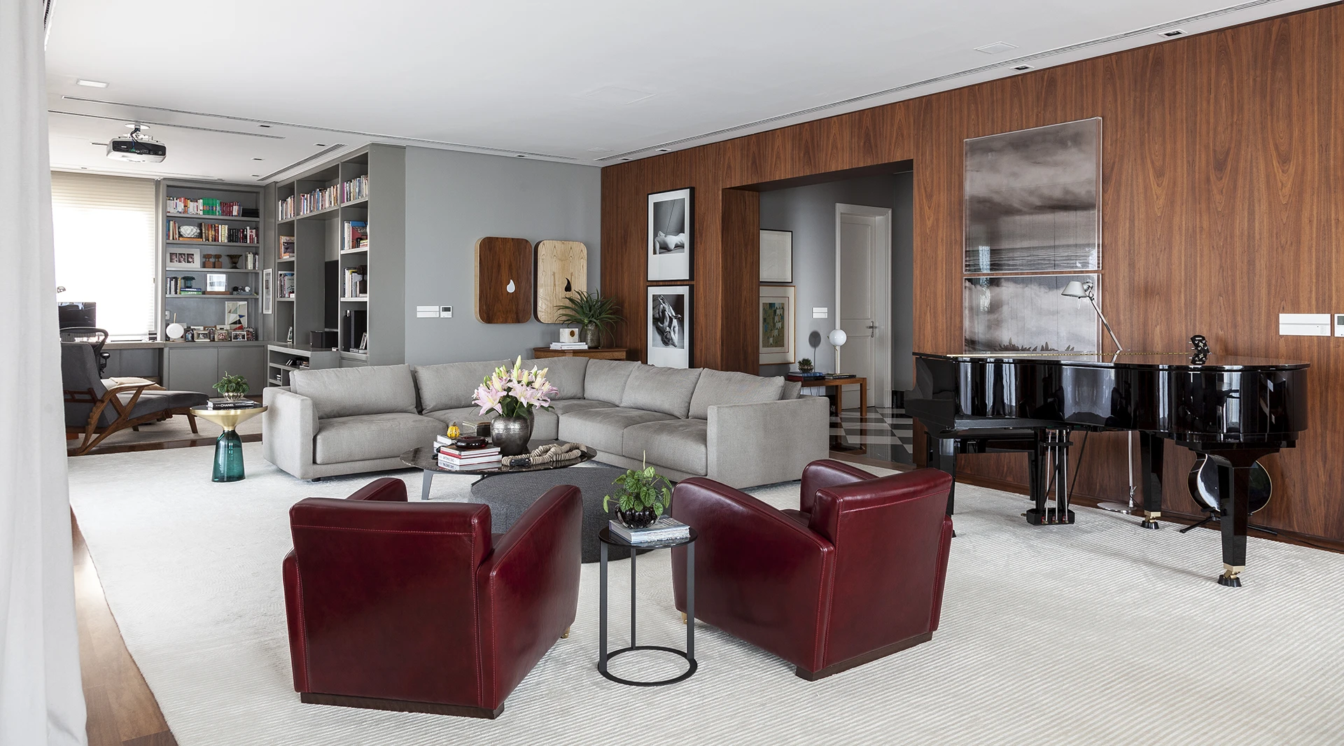 O resultado é um apartamento que acolhe com generosidade — um lugar onde o convívio, a música e o prazer de receber se tornam parte da própria arquitetura.
