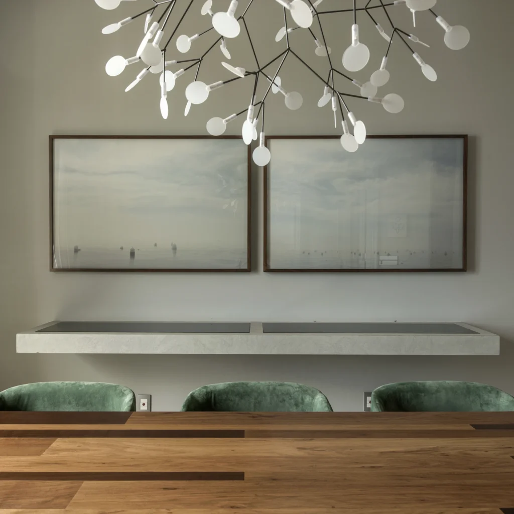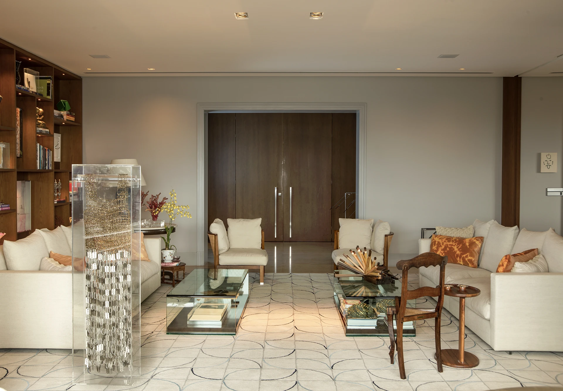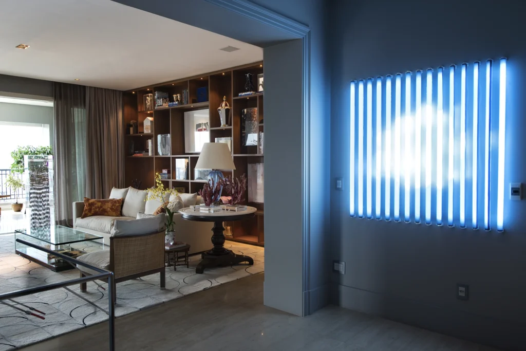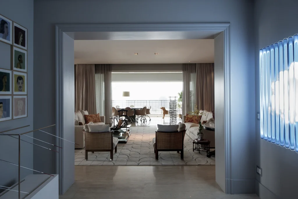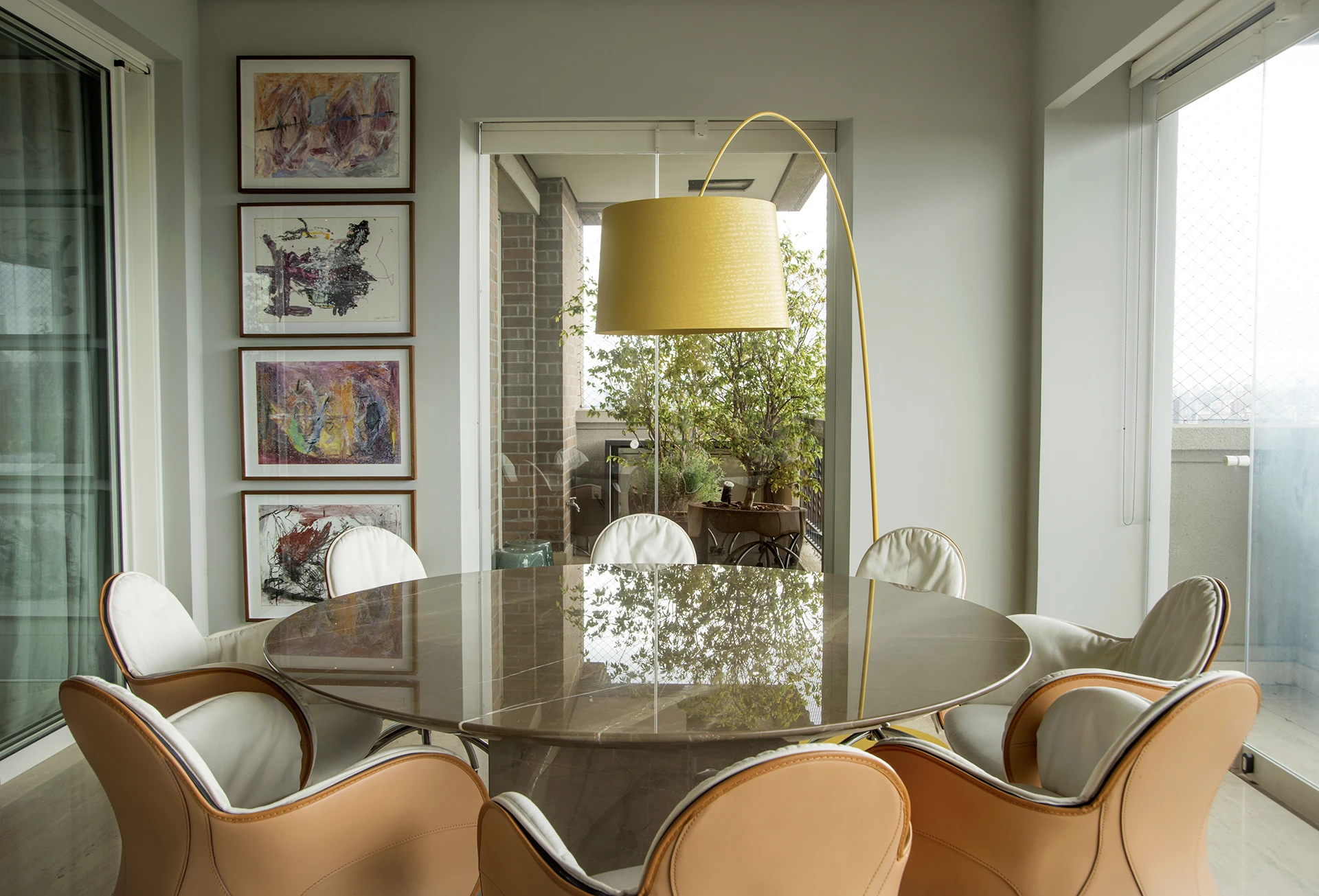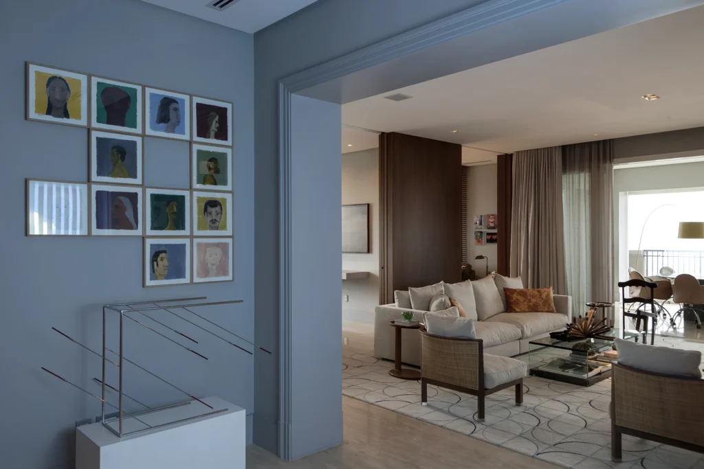 Entre telas, esculturas e peças afetivas, o apartamento Seridó Aroeira se revela como um refúgio contemporâneo pensado para um casal e seus dois filhos. Embora a arte esteja presente em cada canto, o espaço não assume a atmosfera impessoal de uma galeria — ao contrário, acolhe com a naturalidade de um lar vivido, no qual o design e o afeto se equilibram em plena harmonia.