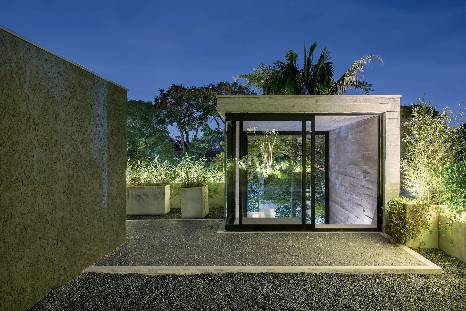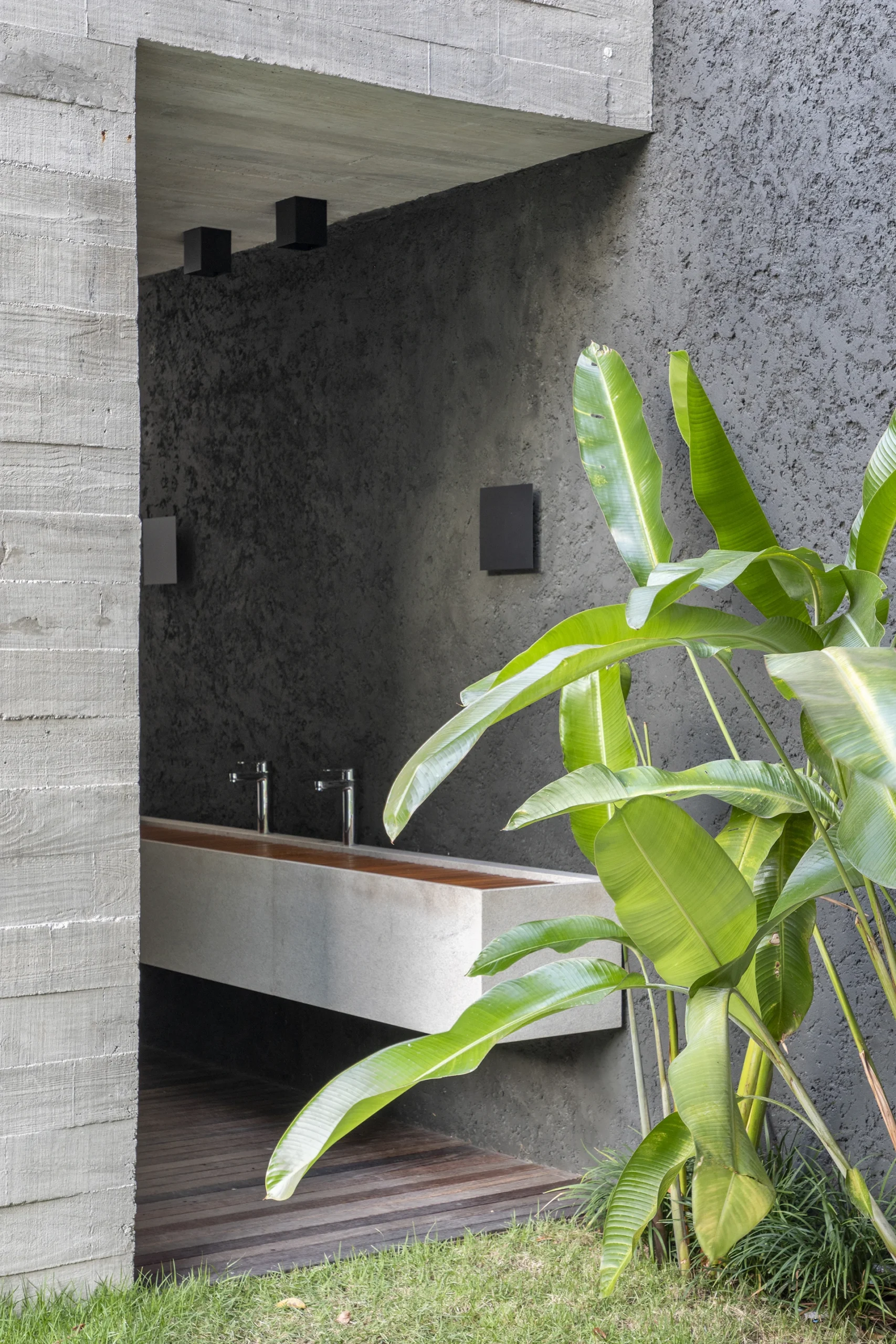 Projetada para o empresário Alexandre Soria, único morador da casa, o projeto nasceu de uma relação de confiança e liberdade criativa. Desde o início, o cliente solicitou uma arquitetura de tons sóbrios, com o concreto aparente como protagonista, reservando a cor para o mobiliário, os objetos e as obras de arte. O resultado é uma casa de linguagem contemporânea e minimalista, com atmosfera sofisticada e descontraída ao mesmo tempo.