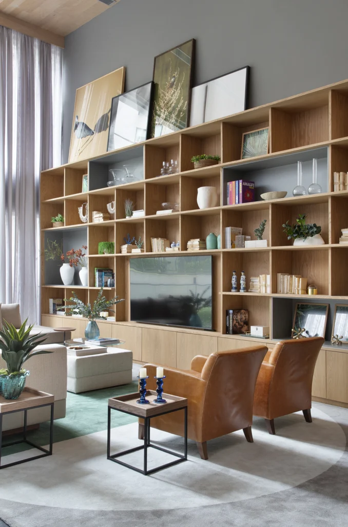 A área social se organiza em um grande ambiente integrado, onde estar, jantar e varanda dialogam de maneira contínua. A marcenaria sob medida da Ornare assume papel fundamental na composição, garantindo unidade visual, precisão construtiva e um desenho atemporal. Materiais nobres, como madeira natural, pedras de tonalidade neutra e metais de acabamento refinado, constroem uma atmosfera acolhedora e sofisticada, sem excessos.