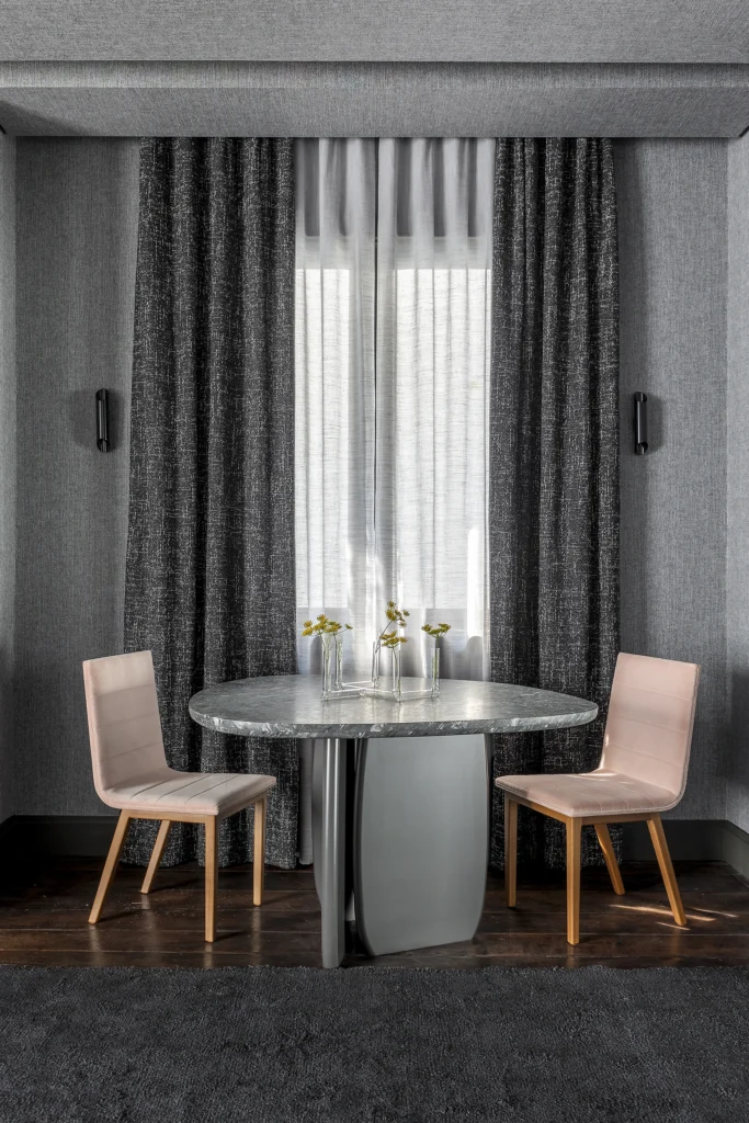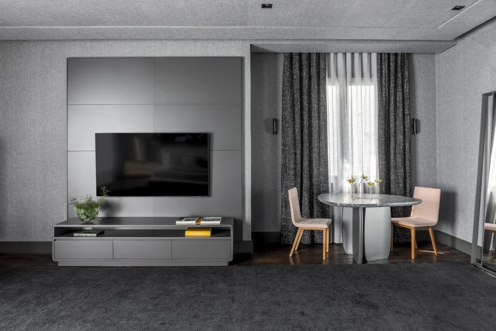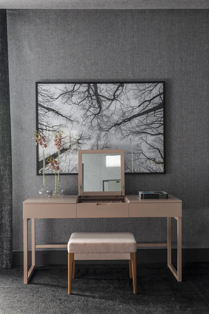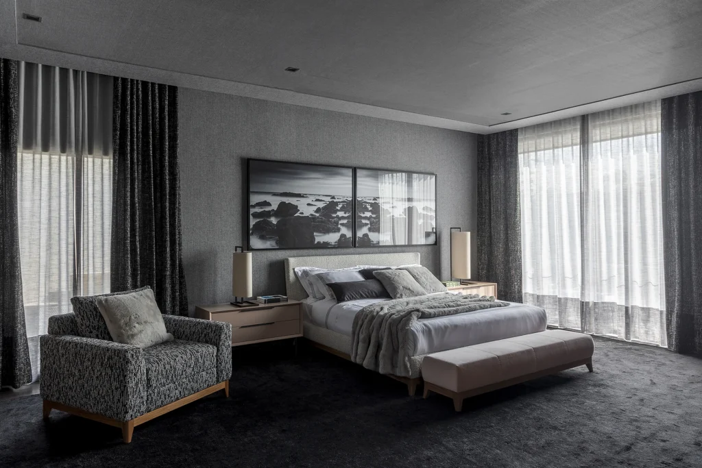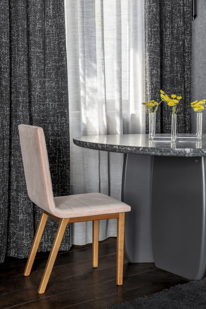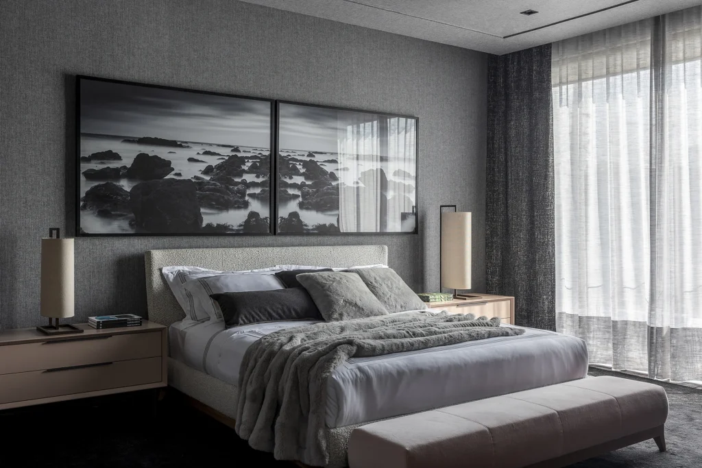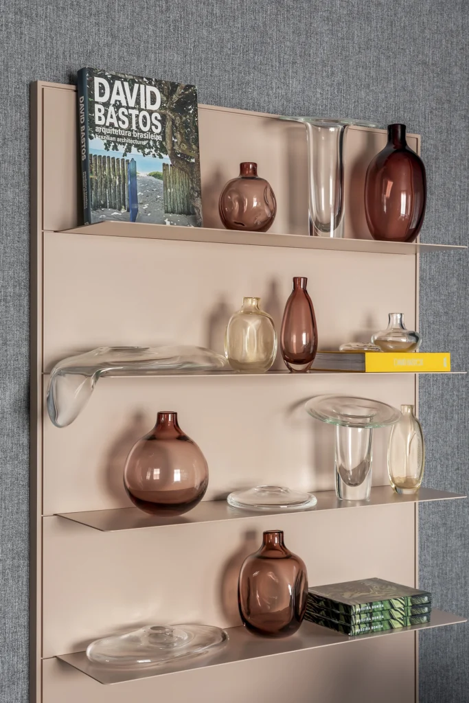 A composição do espaço mescla contrastes sutis e texturas ricas, onde a madeira conversa com superfícies lisas e materiais que ampliam a percepção de profundidade e luz. A atmosfera resultante é acolhedora e intuitiva, refletindo a busca por conexão, introspecção e interação com o ambiente — evocando justamente o conceito de despertar subjetivo proposto pela mostra. madeirabonita.com