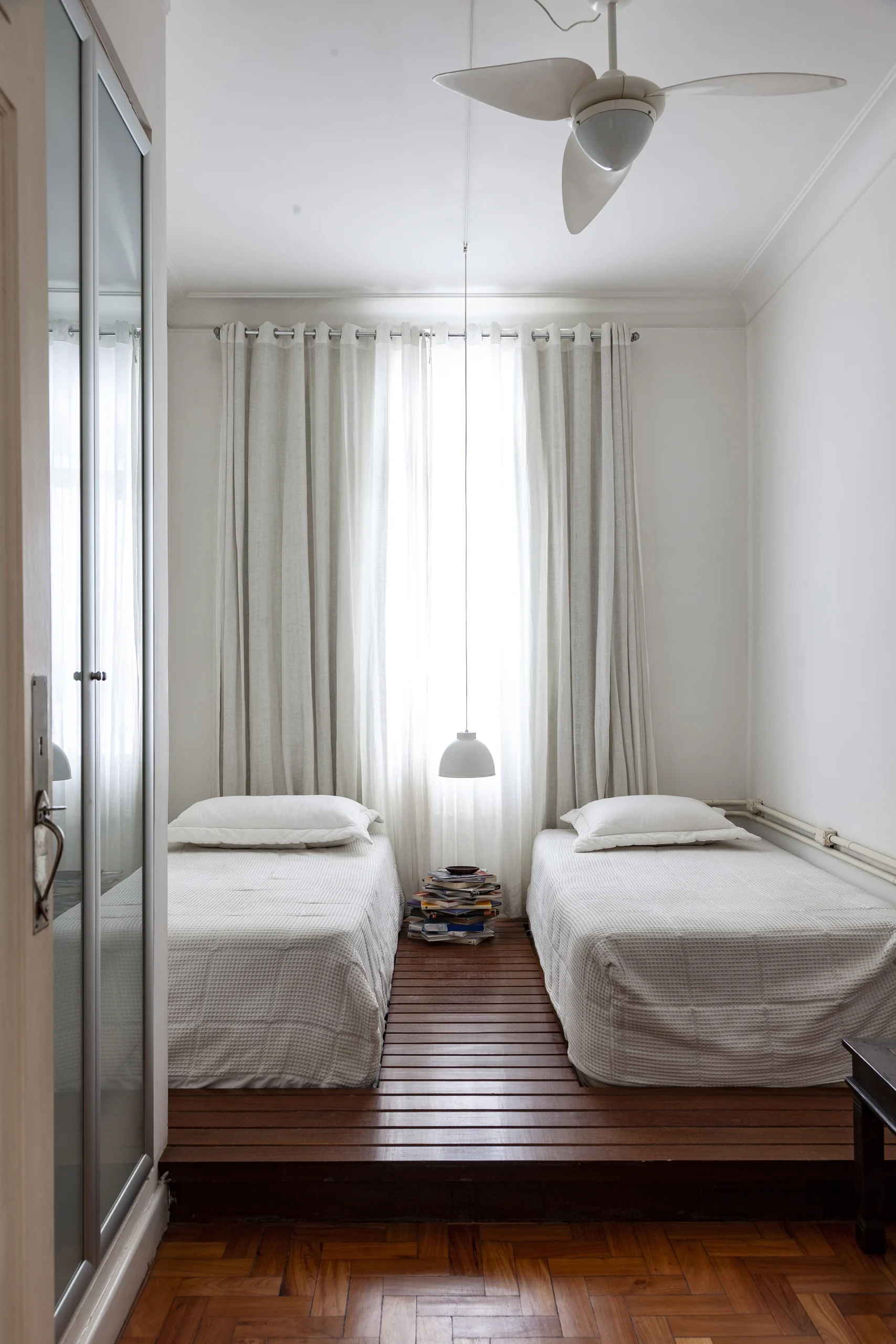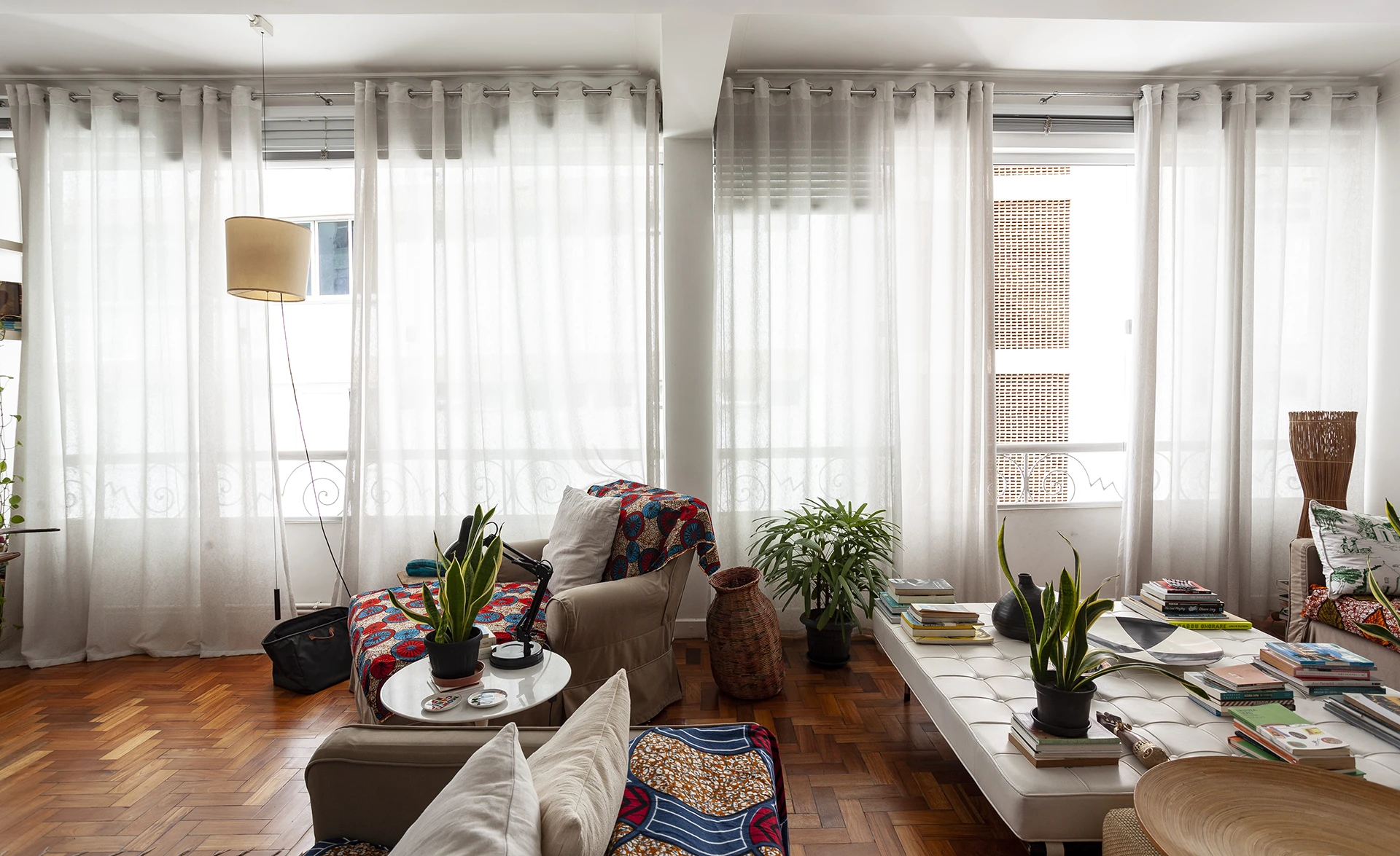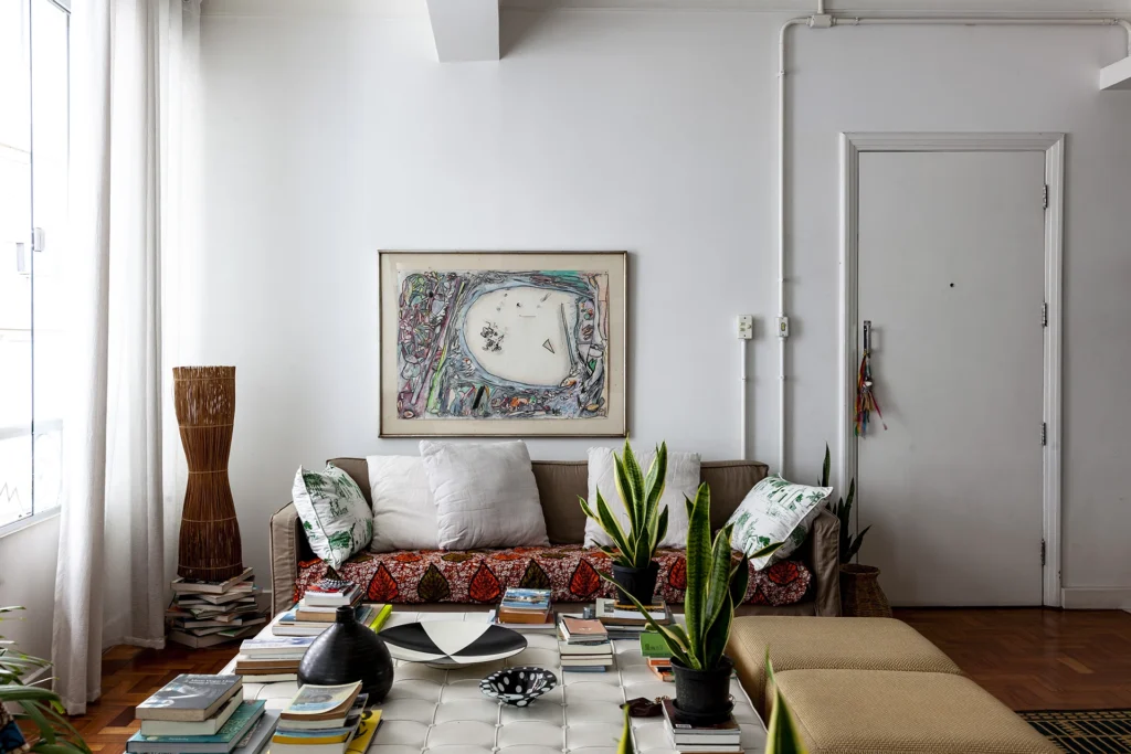 Após uma intervenção delicada e precisa, o apartamento dos anos 1930 revela o estilo despojado e afetivo de sua proprietária, Joyce Pascovitch. A reforma partiu da reorganização da planta original: dois dormitórios deram lugar a uma suíte ampla, enquanto a varanda foi fechada com folhas de vidro, protegendo o interior dos ventos fortes vindos do mar e ampliando a área social.