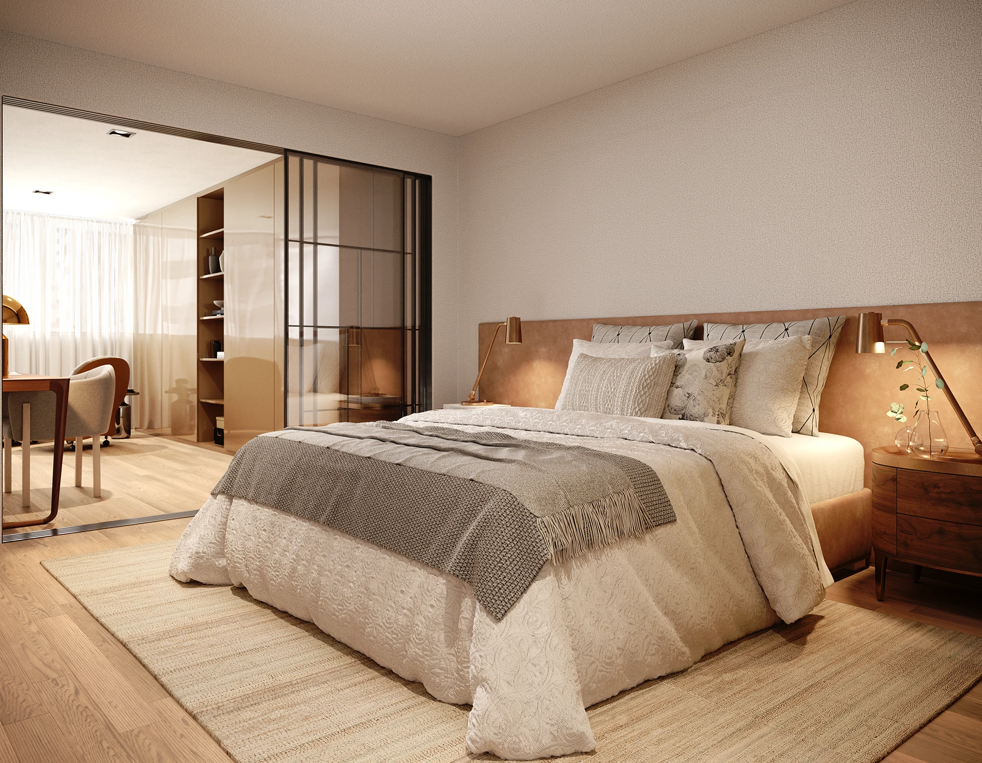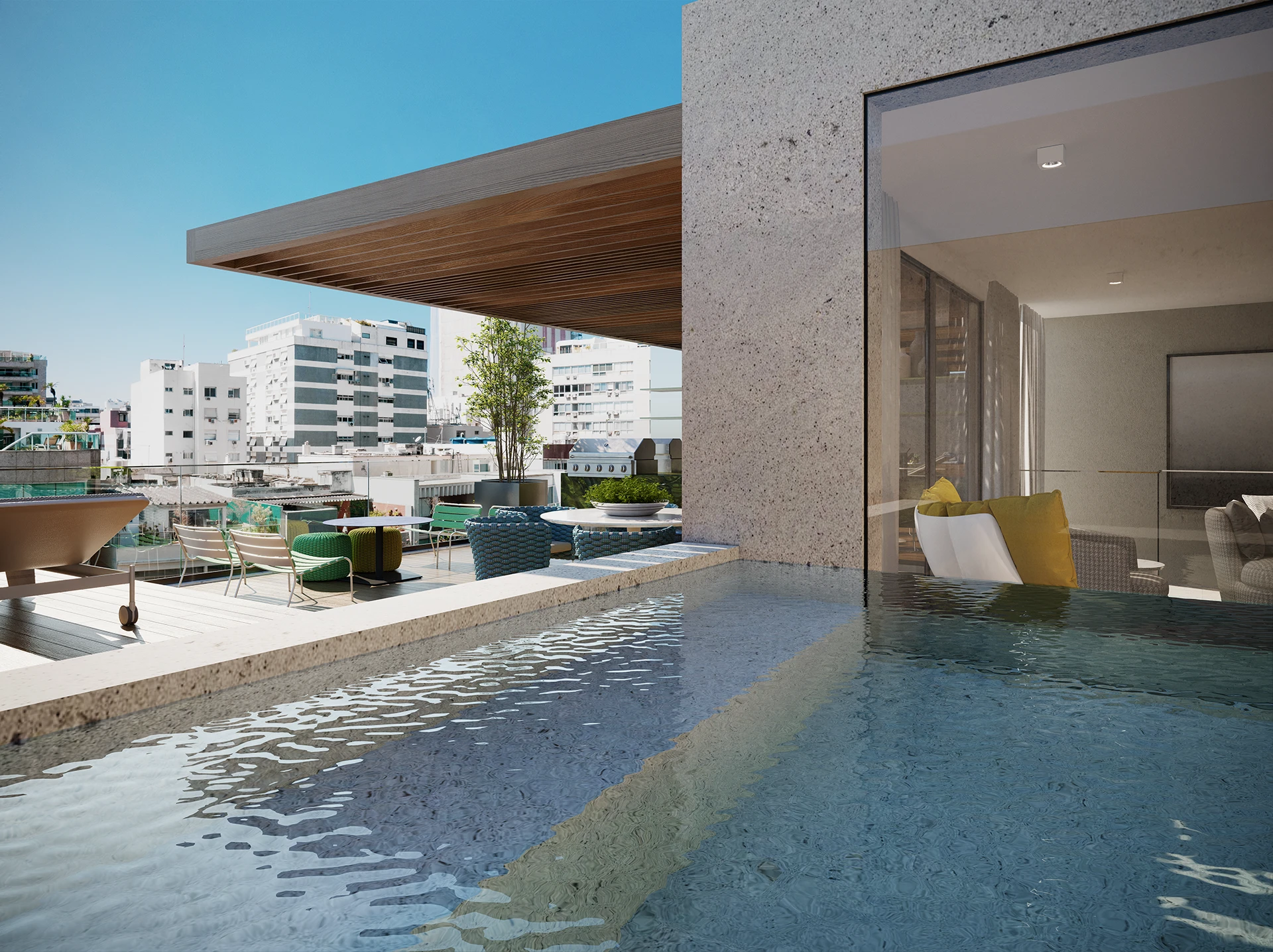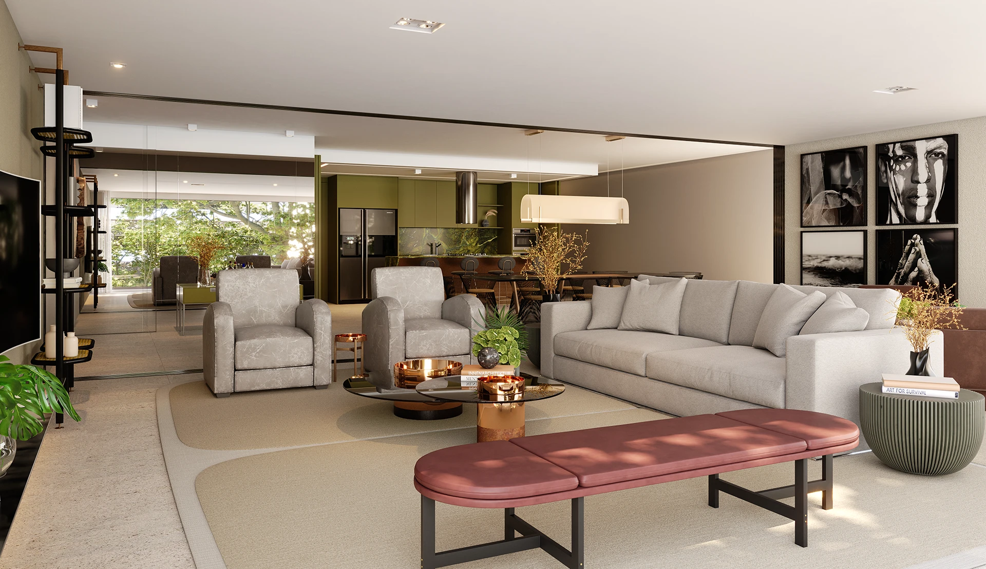 Nas áreas comuns, o projeto prioriza conforto, fluidez e acolhimento, com espaços pensados para o uso cotidiano e para momentos de convivência. A arquitetura e o design atuam de forma integrada, reforçando a sensação de continuidade entre os ambientes e criando uma experiência espacial refinada desde o acesso até as áreas de permanência.
