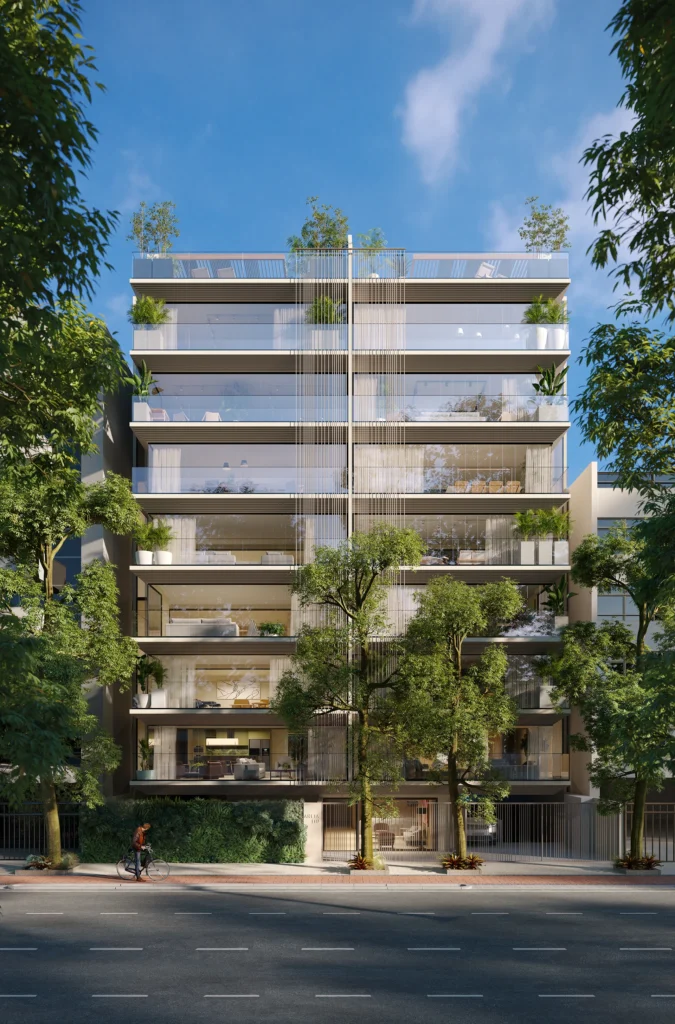 A proposta buscou criar uma identidade contemporânea, elegante e atemporal, alinhada ao alto padrão característico dos empreendimentos Mozak e à atmosfera sofisticada do bairro. O desenho da fachada valoriza proporções equilibradas, materiais nobres e uma linguagem arquitetônica discreta, porém marcante, que dialoga com o entorno urbano do Leblon sem perder personalidade.