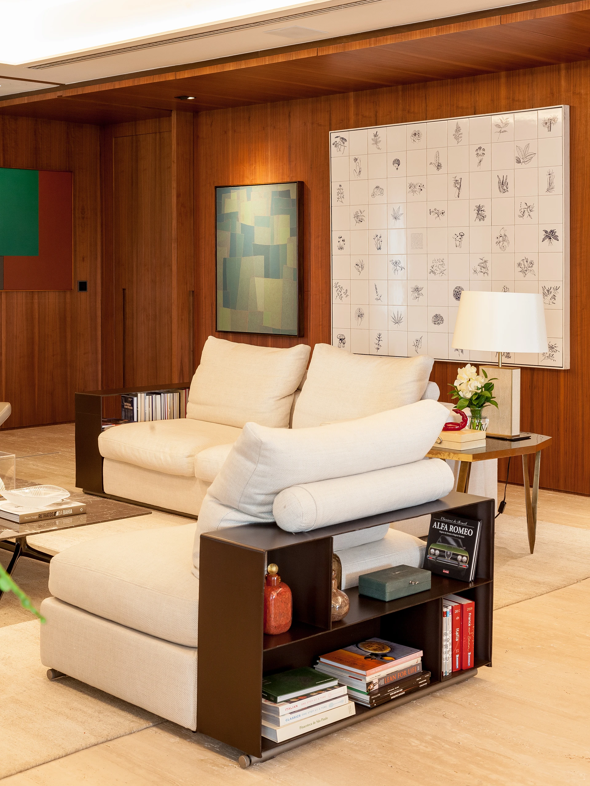 Este apartamento de 320 m² no Paraíso, em São Paulo, foi reformado para um casal com filhos pequenos que vive intensamente a casa, sobretudo nos finais de semana, e gosta de receber amigos para momentos de encontro, música e convivência. A principal solicitação era ampliar ao máximo a área social e garantir que o escritório pudesse funcionar de forma integrada e, ao mesmo tempo, reservada — solução alcançada com uma porta camarão que se abre completamente para o living.
