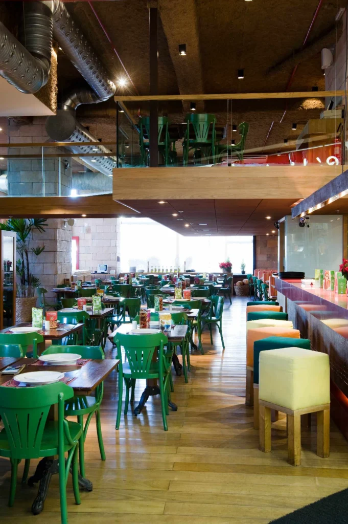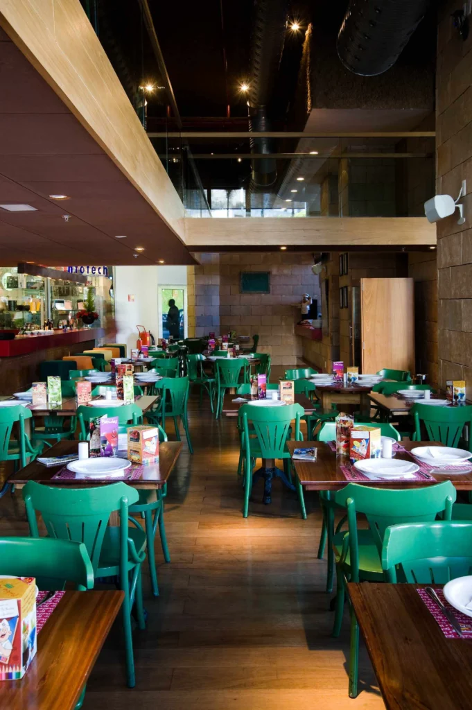 Mesmo sem a divulgação oficial da metragem, o projeto se destaca pela clareza do partido arquitetônico e pela forma como o espaço é organizado, garantindo funcionalidade, conforto e longevidade. O uso do mezanino reforça a vocação do restaurante como um ambiente dinâmico, adequado tanto para refeições rápidas quanto para permanências mais longas.
