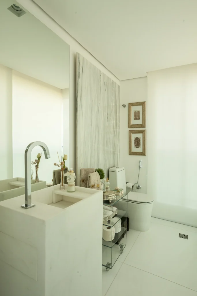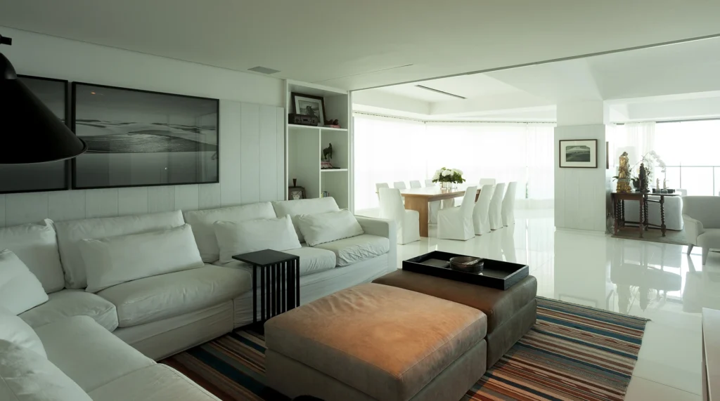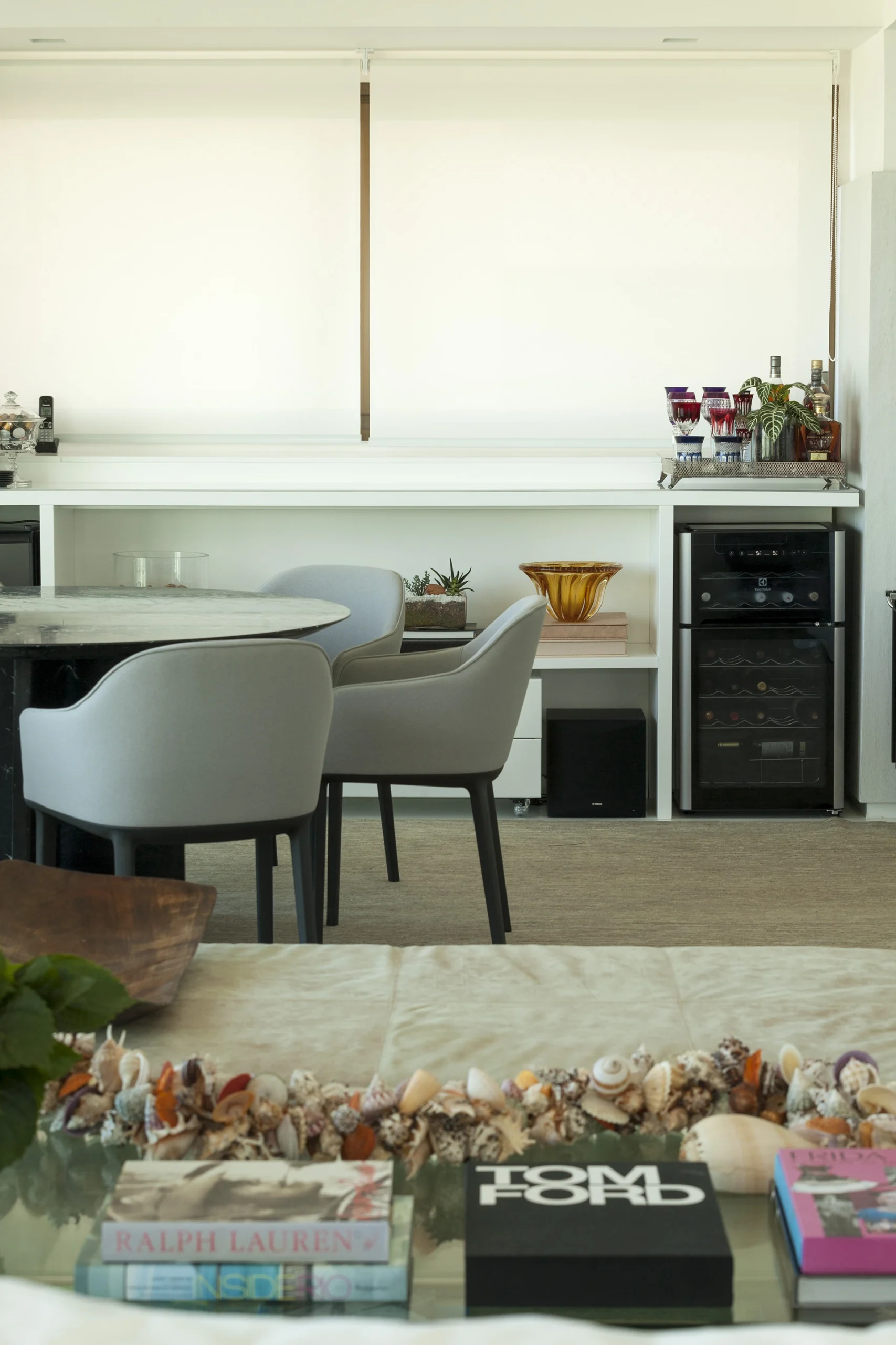 O resultado é um apartamento que equilibra leveza, identidade e permanência, onde o morar urbano encontra a serenidade do litoral em uma composição madura e atemporal.