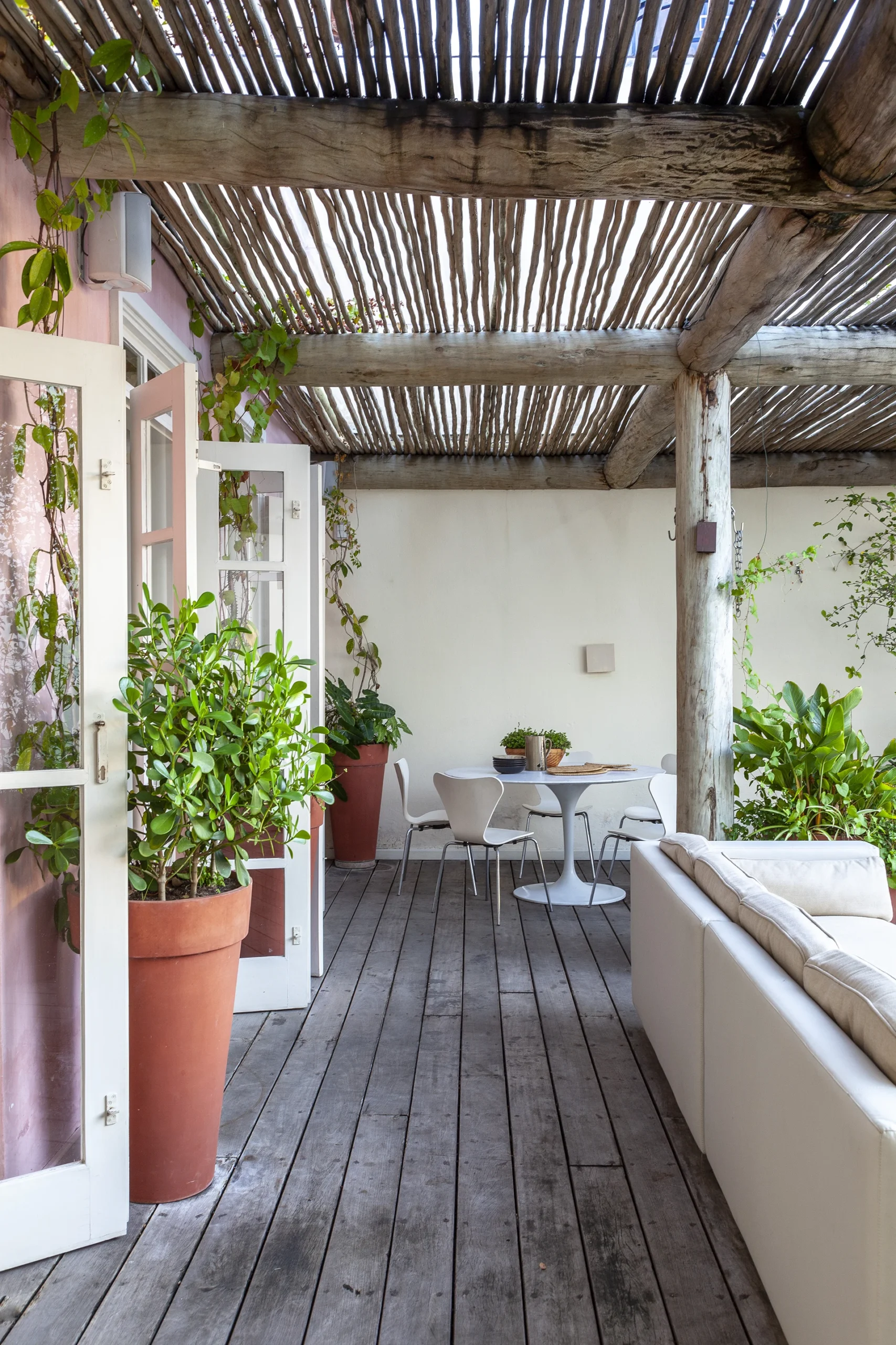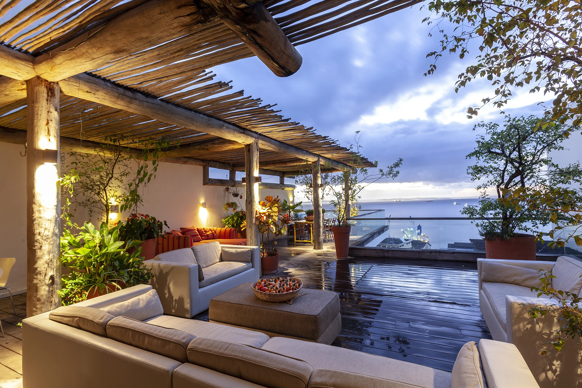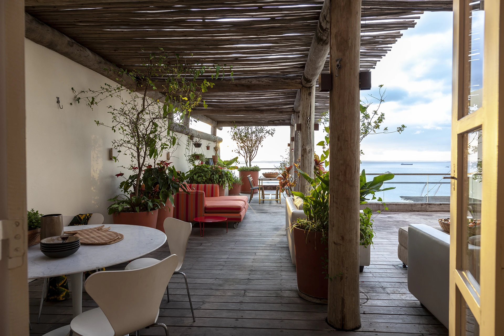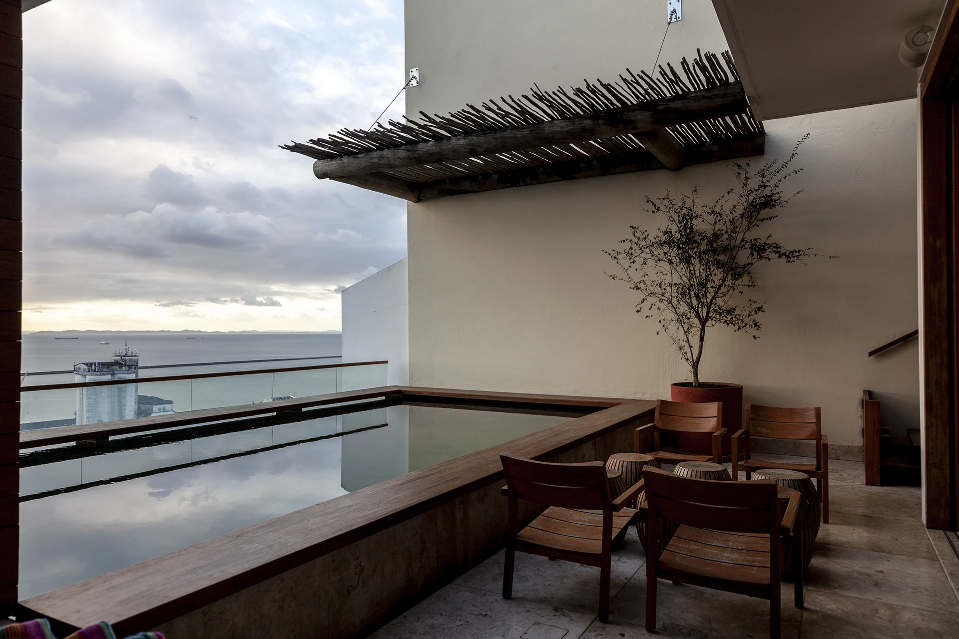 Entre o movimento da cidade e a contemplação da paisagem, esta casa no Centro Histórico de Salvador equilibra contrastes com naturalidade. De um lado, o Convento do Carmo e o cotidiano pulsante da calçada; do outro, a Baía de Todos os Santos e o vaivém do Elevador Lacerda, vistos a partir do terraço. Ao unificar duas antigas casas geminadas, possivelmente dos séculos XVIII e XIX, David Bastos valorizou a localização privilegiada do imóvel e promoveu uma requalificação cuidadosa dos espaços, respeitando integralmente as diretrizes do patrimônio histórico. As fachadas originais — uma em tom rosado, outra em creme — foram preservadas, assim como os pilares internos e as paredes de adobe que orientaram a nova planta.
