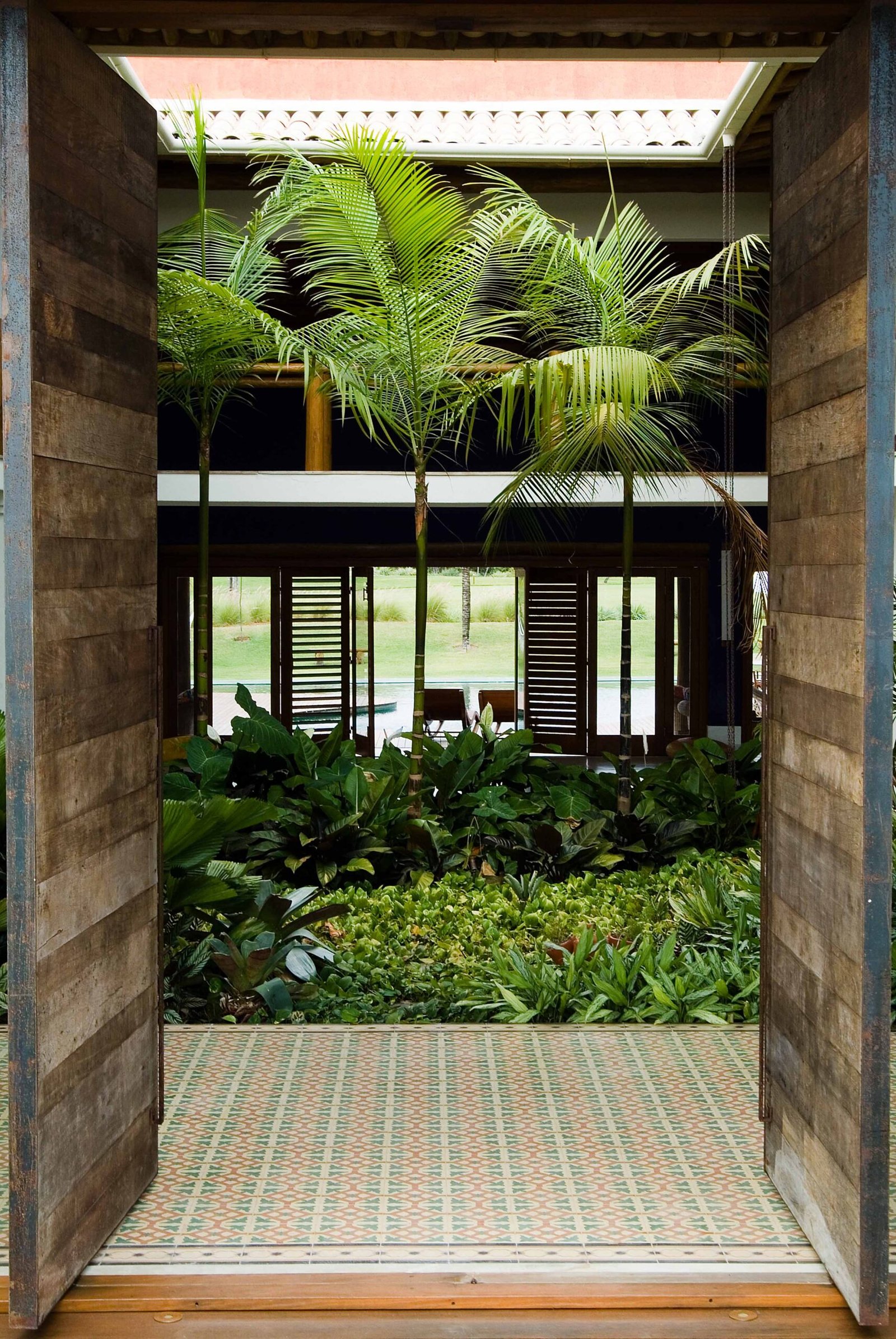 Uma das primeiras casas construídas no condomínio Terravista, em Trancoso, este projeto marca também a primeira obra de David Bastos no local — ponto de partida para a identidade arquitetônica que viria a definir as casas da região. Os pinos estruturais surgem de forma ainda discreta nas varandas, enquanto os paletões, já naquela época, se afirmavam como elemento essencial de sua linguagem.