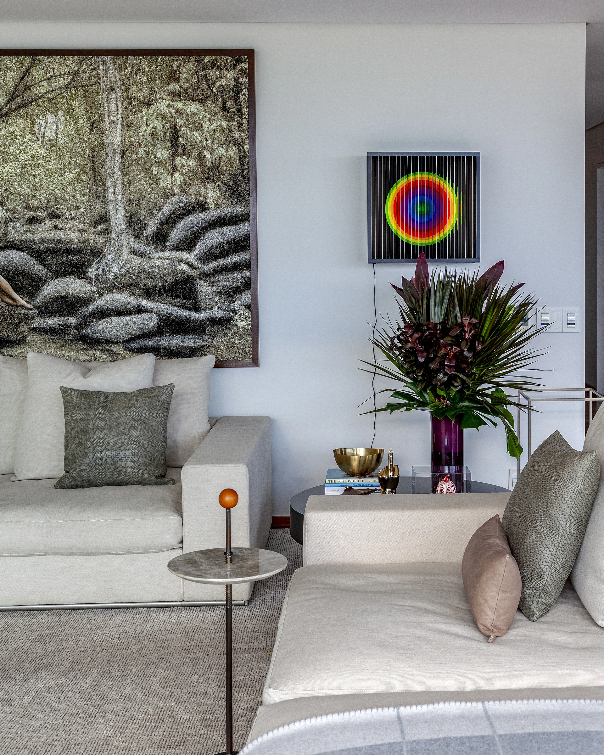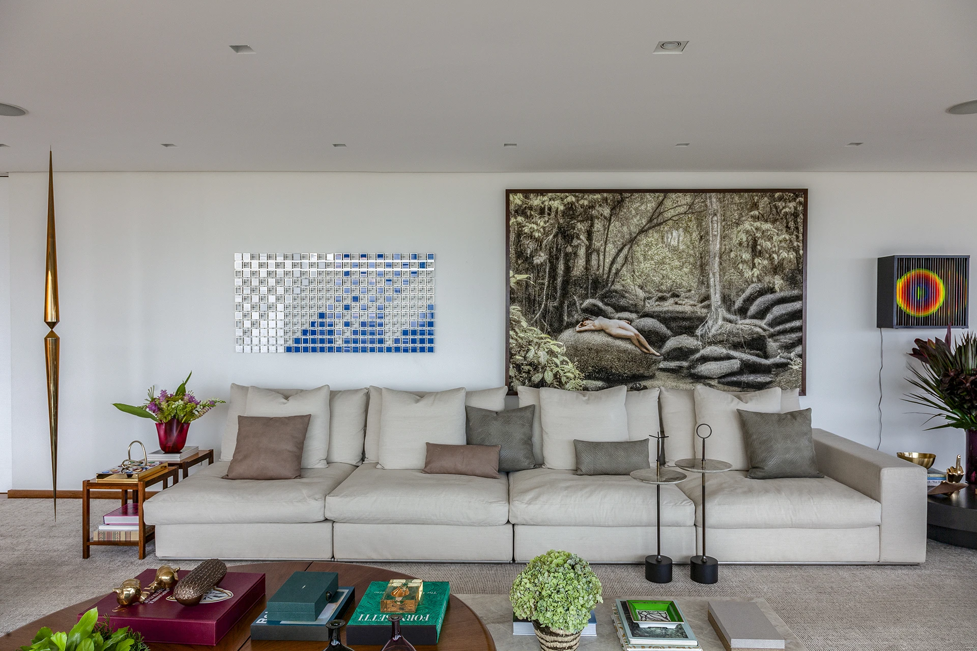 A assessoria na escolha das obras de arte foi fundamental para conferir identidade e densidade aos ambientes. Em um curto espaço de tempo, selecionamos um acervo valioso que inclui nomes consagrados como:
