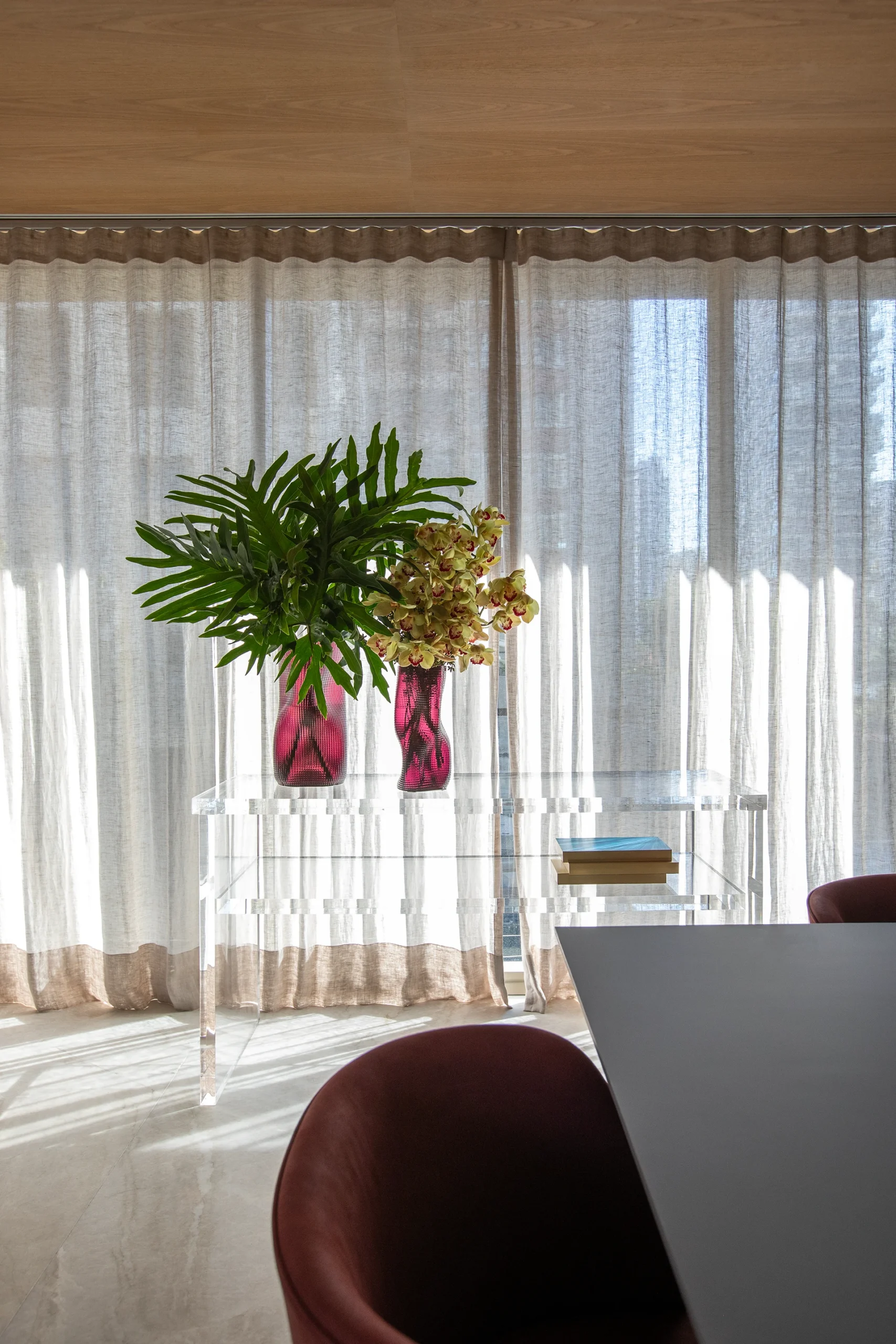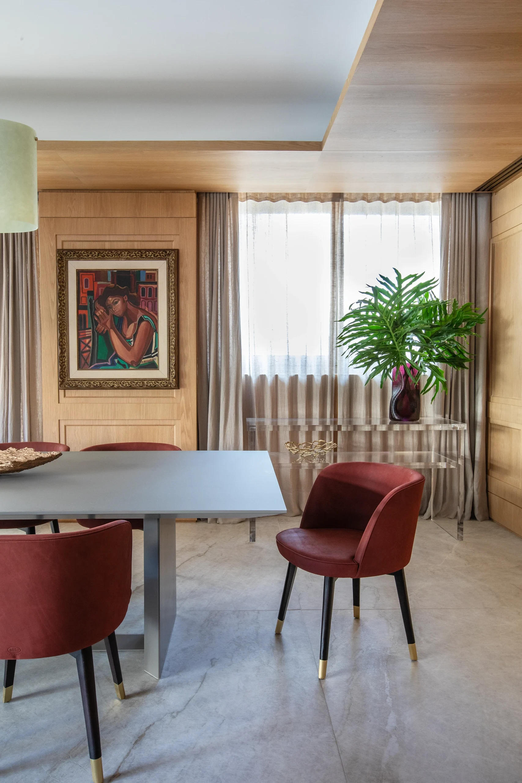 Desenvolvido entre 2021 e o início de 2025, o projeto teve como principal desafio a ampliação do garden, que exigiu adequações de fachada e aprovação condominial. Superada essa etapa, o resultado é um apartamento de linguagem contemporânea, marcado pela curadoria precisa de design, pela presença expressiva da arte e pela integração plena dos espaços — um reflexo fiel do modo de viver da família.