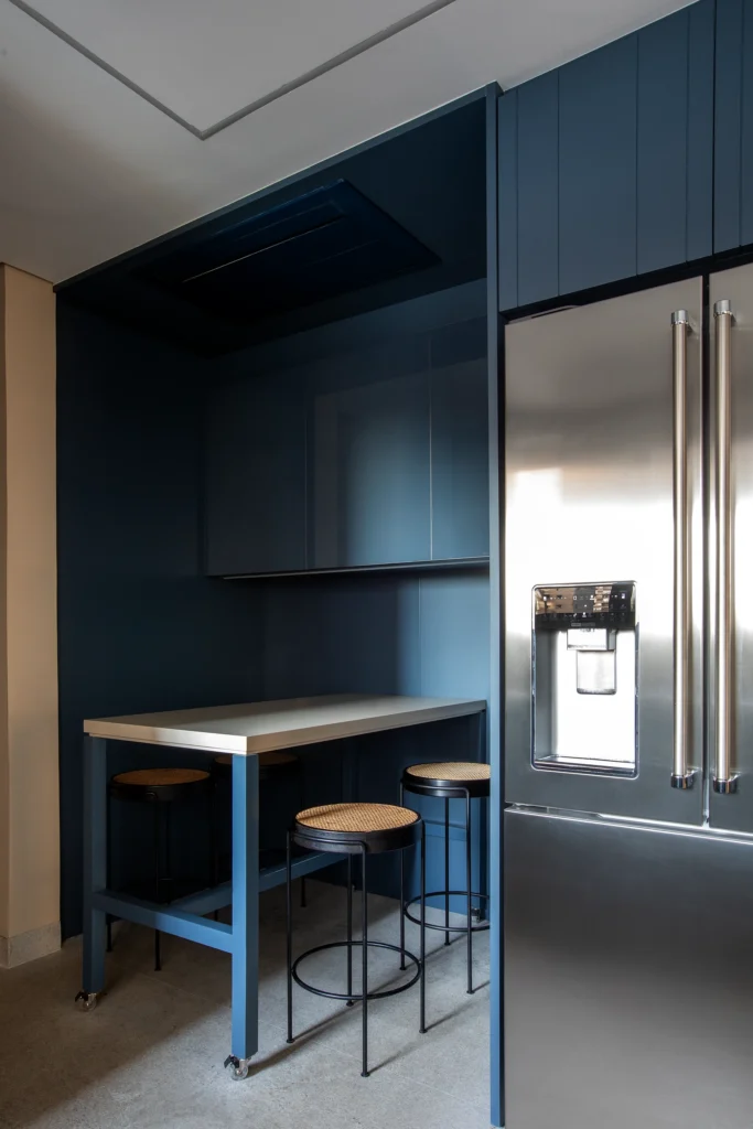 O imóvel é novo e passou previamente por um processo de personalização junto à construtora, mas foi a partir da reforma e do projeto de interiores que o apartamento ganhou sua configuração definitiva. A proposta partiu do desejo dos clientes de integrar amplamente a área social, criando espaços generosos para receber amigos, sem abrir mão de funcionalidade, leveza e do uso expressivo de cores.